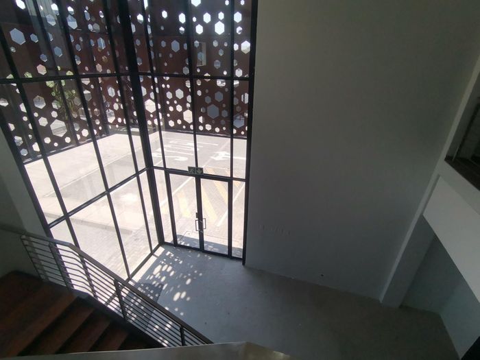 Elevate your business in Woodmead's Woodlands Office Park, enjoying Sandton skyline and game-park views from a private balcony, modern kitchen, partitioned offices and secure on-site parking.
