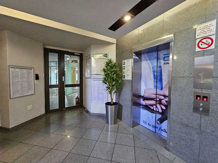 Elevate your business in Constantia Kloof's vibrant commercial hub, minutes from the N1, enjoying panoramic mountain-to-Sandton views from a private balcony; 1,592 sqm office, four bathrooms, 30 covered bays.