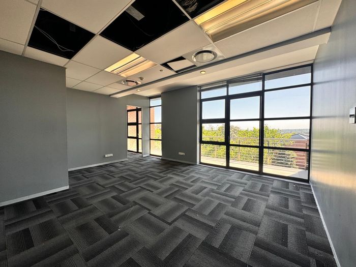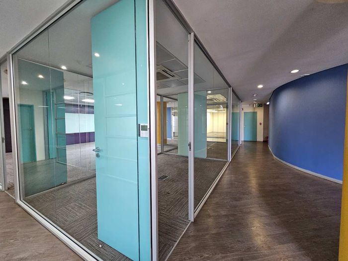 Elevate your team's workday in Sandton's leafy office precinct on Rivonia Road, with sunlit open-plan areas, private offices, a balcony with sweeping Sandton views, and 24/7 security.