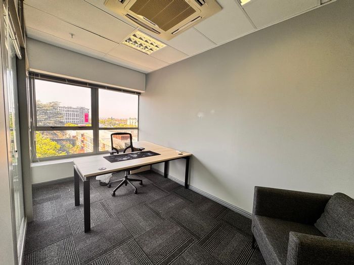 Discover unparalleled business sophistication at Katherine & West Business Park in Sandton, featuring a fully fitted sectional title office for sale in the iconic Katherine and West Building. This office offers an exceptional reception area, a balcony with stunning Sandton views, and modern design by a top Sandton design company. It includes executive and open-plan office options, a staff canteen and bar, well-designed boardrooms, and is fully air-conditioned and wheelchair accessible. The building features ground floor manned security, 24-hour security, a modern lobby, and a coffee shop. It is opposite the Sandton Gautrain and close to Sandton City. Located on the prime corner of Katherine and West Streets, it offers easy access to the M1 freeway, upmarket hotels, and key amenities of Sandton CBD. Connect with us at Swindon Property to explore this unique opportunity in the heart of Sandton.