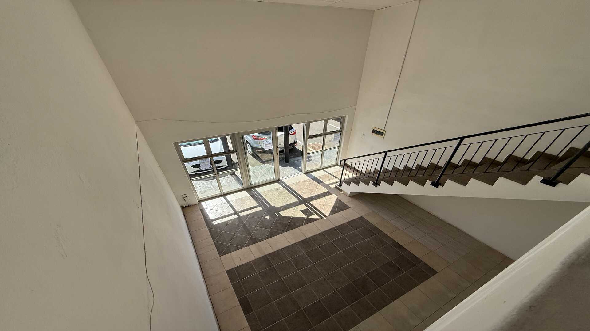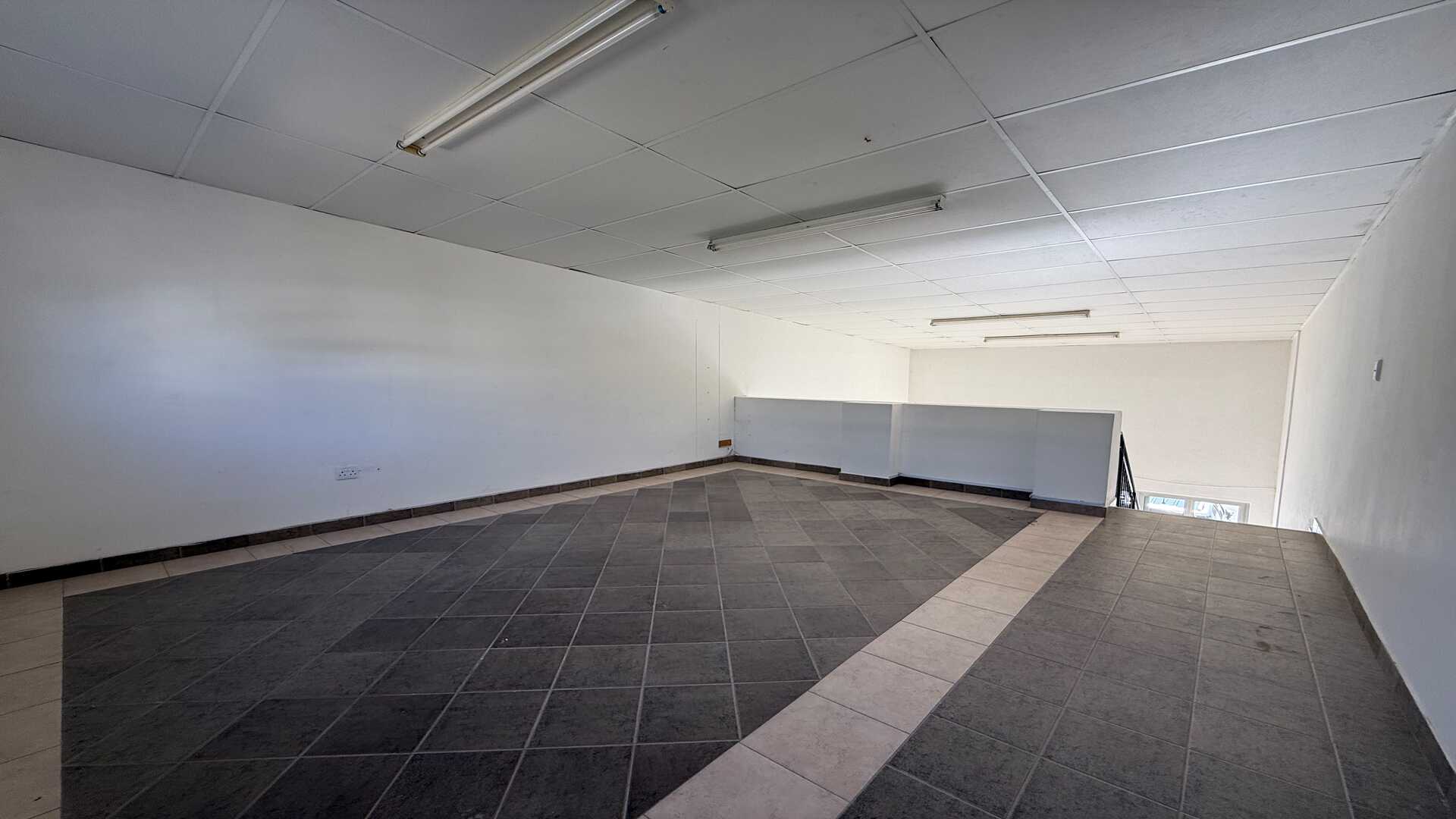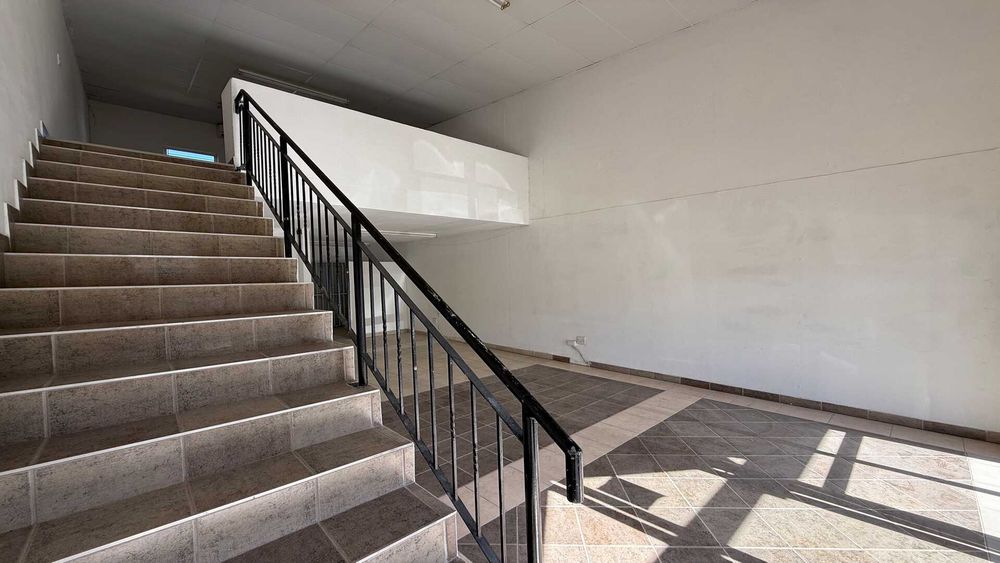 The ground floor features an open-plan layout with great natural light, complemented by a kitchenette and two restrooms for convenience. The mezzanine level offers a spacious, open plan office – perfect for management, meetings, or focused workspace.