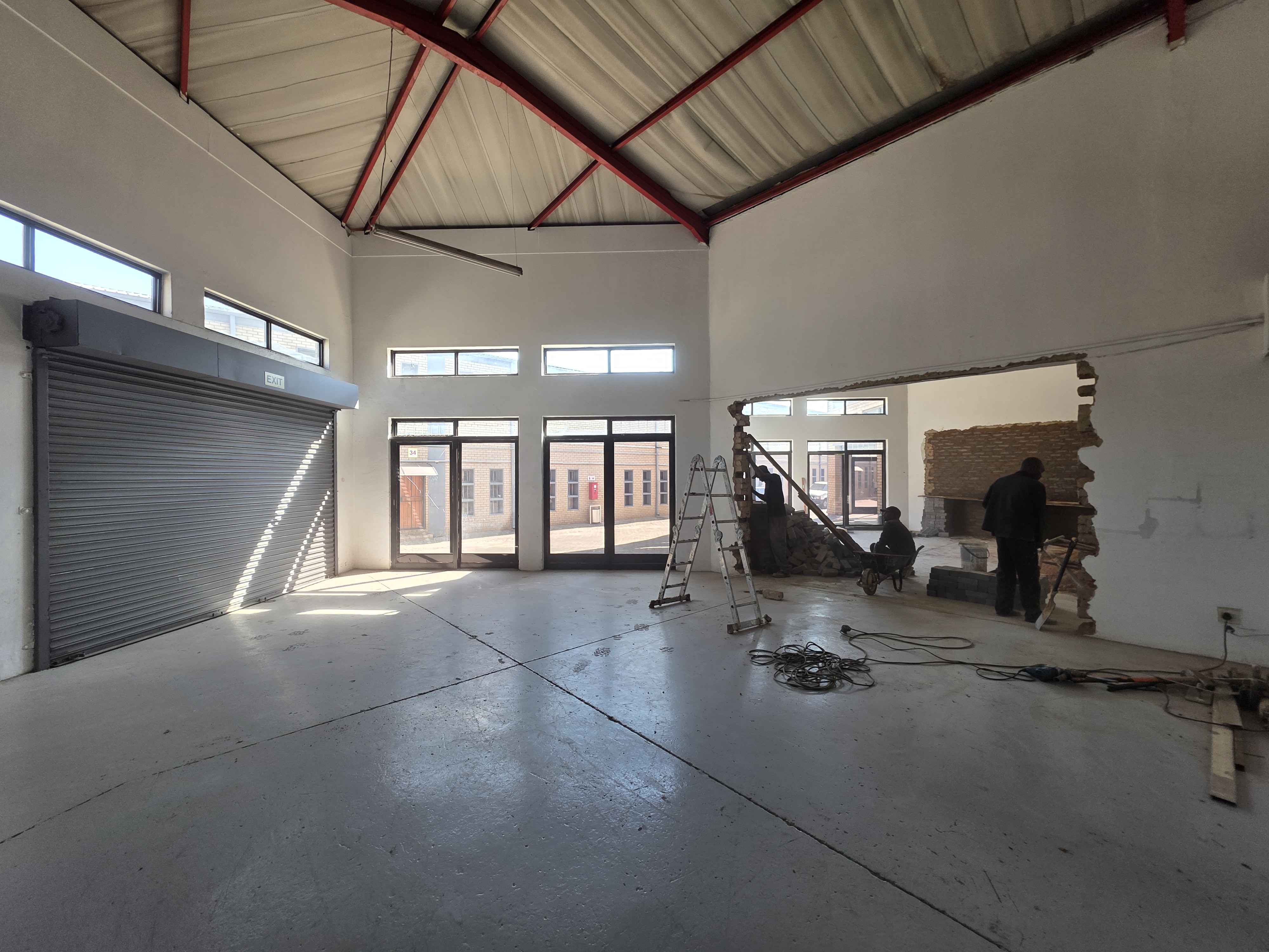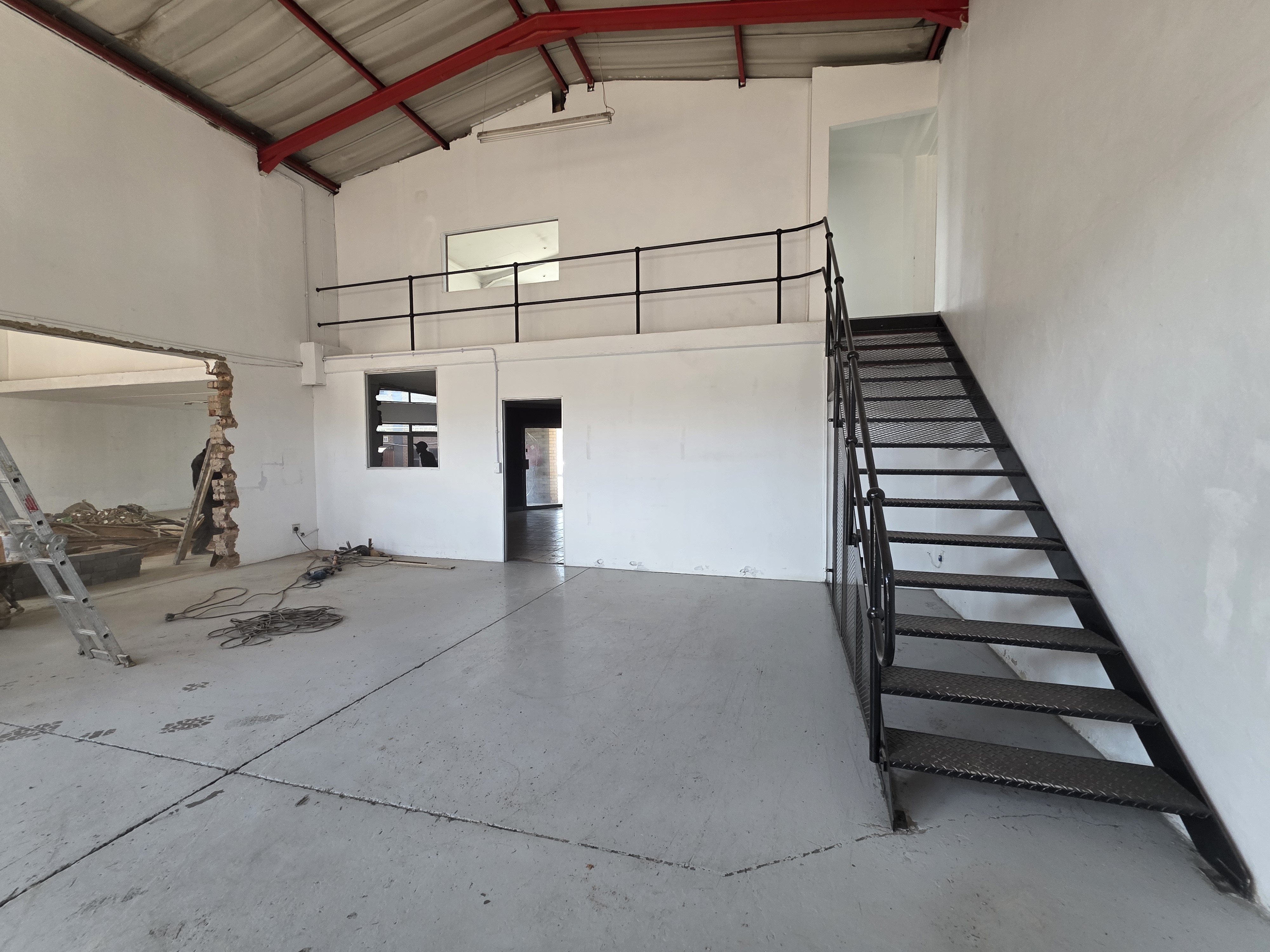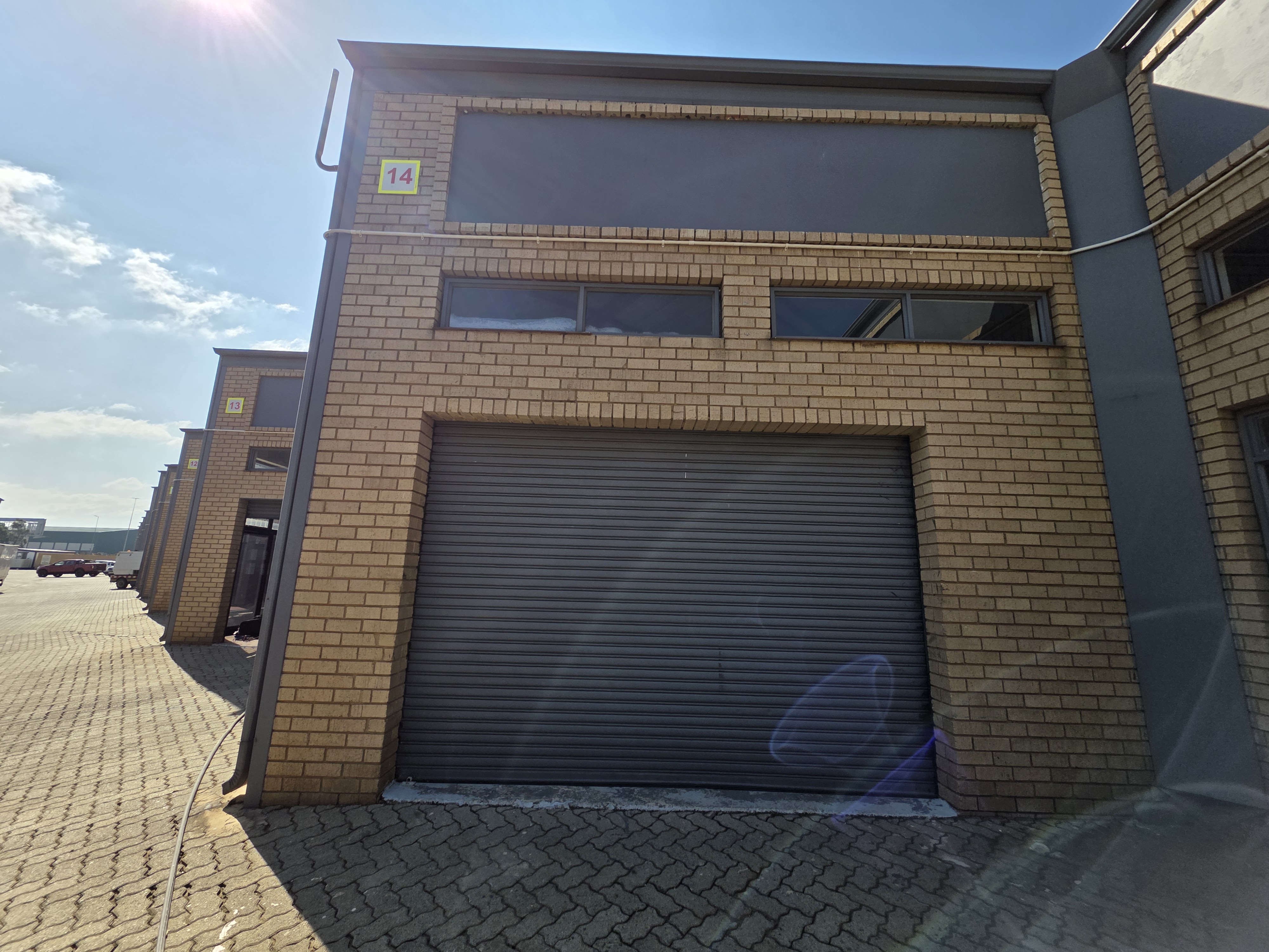 Warehouse with Neat floors with plenty of natural light coming into the premises and good height to eaves. Perfect for storage, light manufacturing or overflow space. Reception area with kitchen and ablutions. First floor open-planned office overlooking the warehouse area. 24hr security and access control. The entire business park is supported by a large 350kva generator. A dedicated fibre line hosted by OpenTel feeds the business park. The park offers extra space for tenants vehicles to park overnight or store bulk items outside their units.