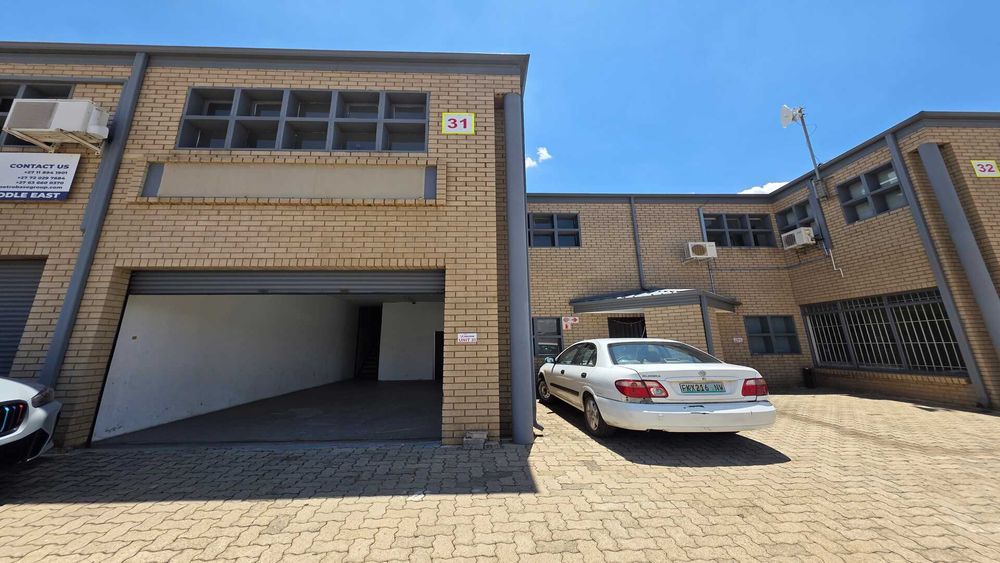 Unit size of 225 under roof including office space. 1 x roller shutter door. 3phase power pre-paid with 60amps.225 Warehouse with Neat floors with plenty of natural light coming into the premises and good height to eaves. Perfect for storage, light manufacturing or overflow space. Reception area with kitchen and ablutions. First floor open-planned office overlooking the warehouse area. 24hr security and access control. The entire business park is supported by a large 350kva generator. A dedicated fibre line hosted by OpenTel feeds the business park. The park offers extra space for tenants vehicles to park overnight or store bulk items outside their units. The N12, R21 and R24 freeways are easily accessible with O.R. Tambo International Airport being within 5.7km (7mins) distance. AVAILABLE IMMEDIATELY