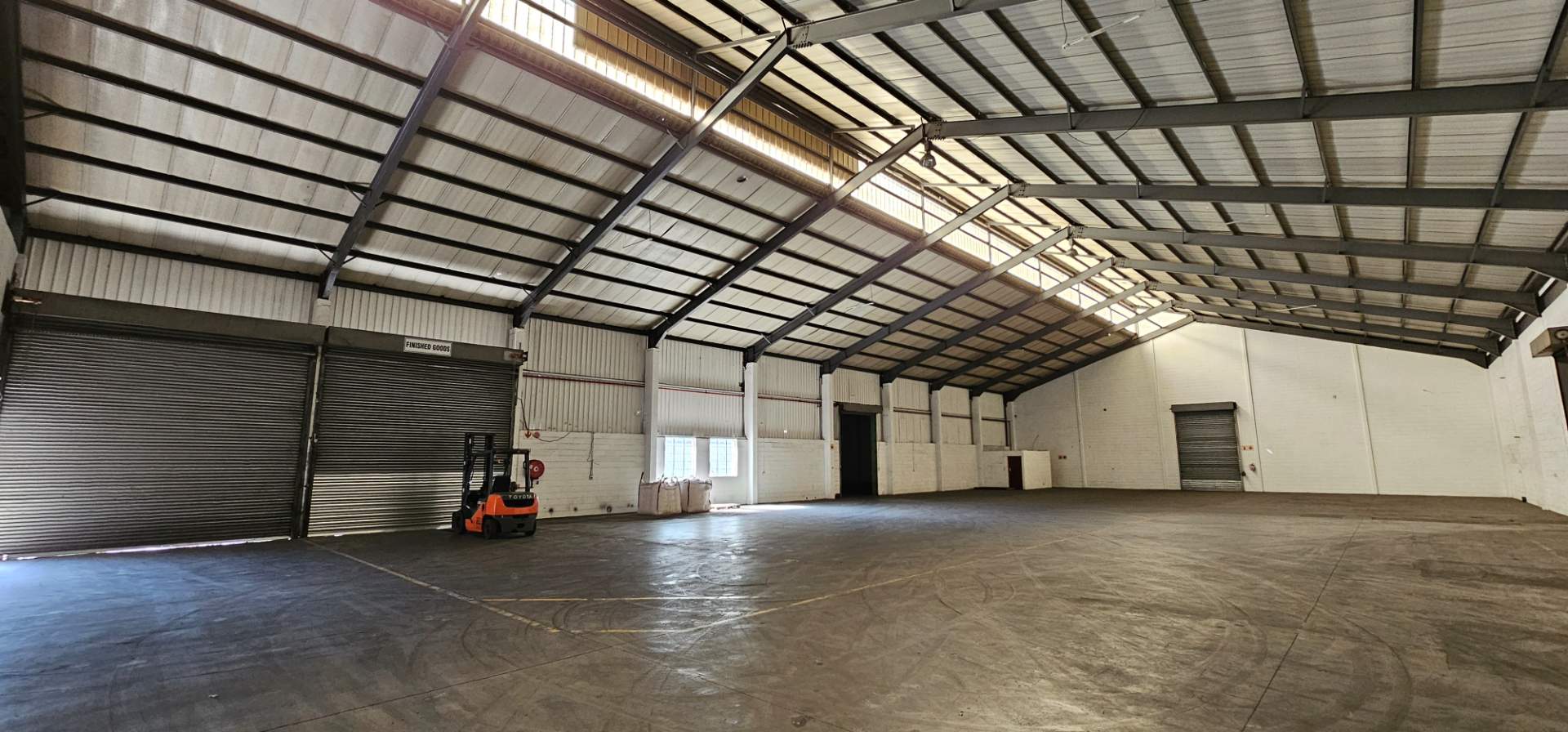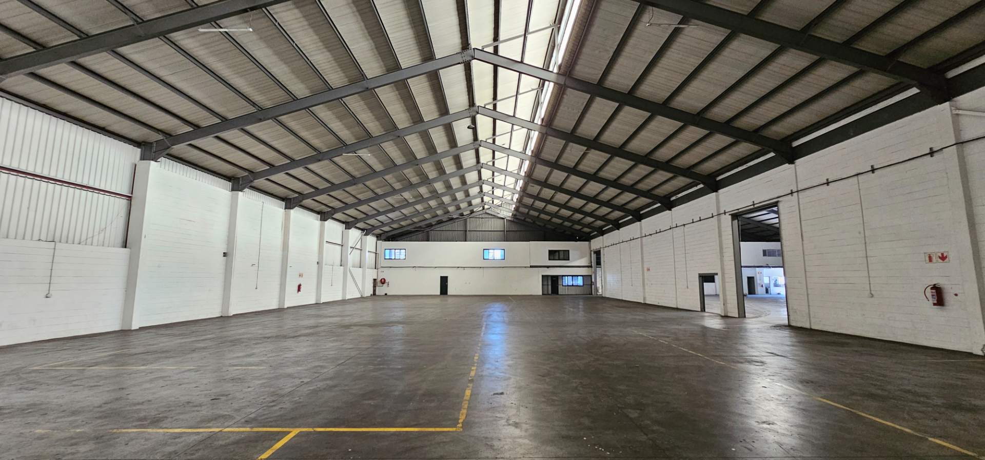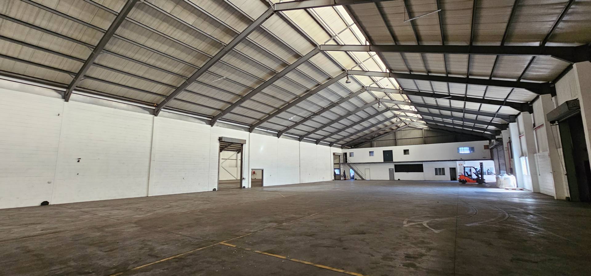 Inside the warehouse, you will find four interconnected main areas, enhancing operational efficiency. Essential amenities such as a kitchenette, ablutions, canteen, and office areas are provided for warehouse staff. The offices are air-conditioned and offer a pleasant view overlooking the factory floor. Furthermore, the office staff can enjoy immaculately tiled bathrooms for their comfort.