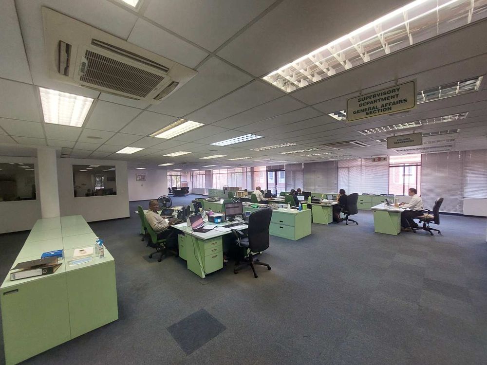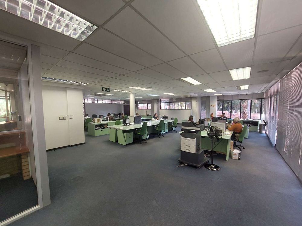 This standalone office in the prestigious Bedfordview enclave offers 1,173 sqm of thoughtfully designed workspace, comprising 954 sqm on the ground floor, 219 sqm on the first floor, and an additional 215 sqm of basement storage. The expansive layout allows for seamless integration of departments, collaborative areas, and amenities, creating a productive and creative environment tailored to diverse business needs.