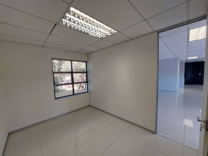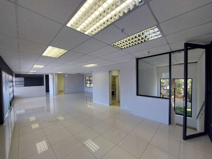 This 156 sqm first-floor office in St Andrews Office Park, located at 39 Wordsworth Avenue, Bedfordview, presents a professional and flexible workspace ideal for various business needs. The office boasts a well-designed layout featuring both open-plan areas for collaborative work and private offices for focused tasks. This combination allows for a dynamic work environment that can easily adapt to different operational styles.