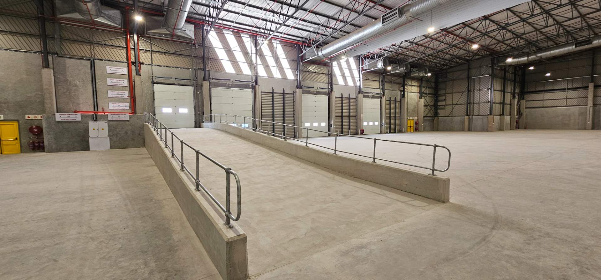 The expansive warehouse boasts a generous height to eaves of 9 meters, facilitating efficient storage and operations. It is powered by 3-phase electricity with a capacity of 250 Amps and features an integrated sprinkler system for added safety. Accessibility is enhanced by four roller shutter doors, one with a dock leveler, along with the option to add three additional doors.