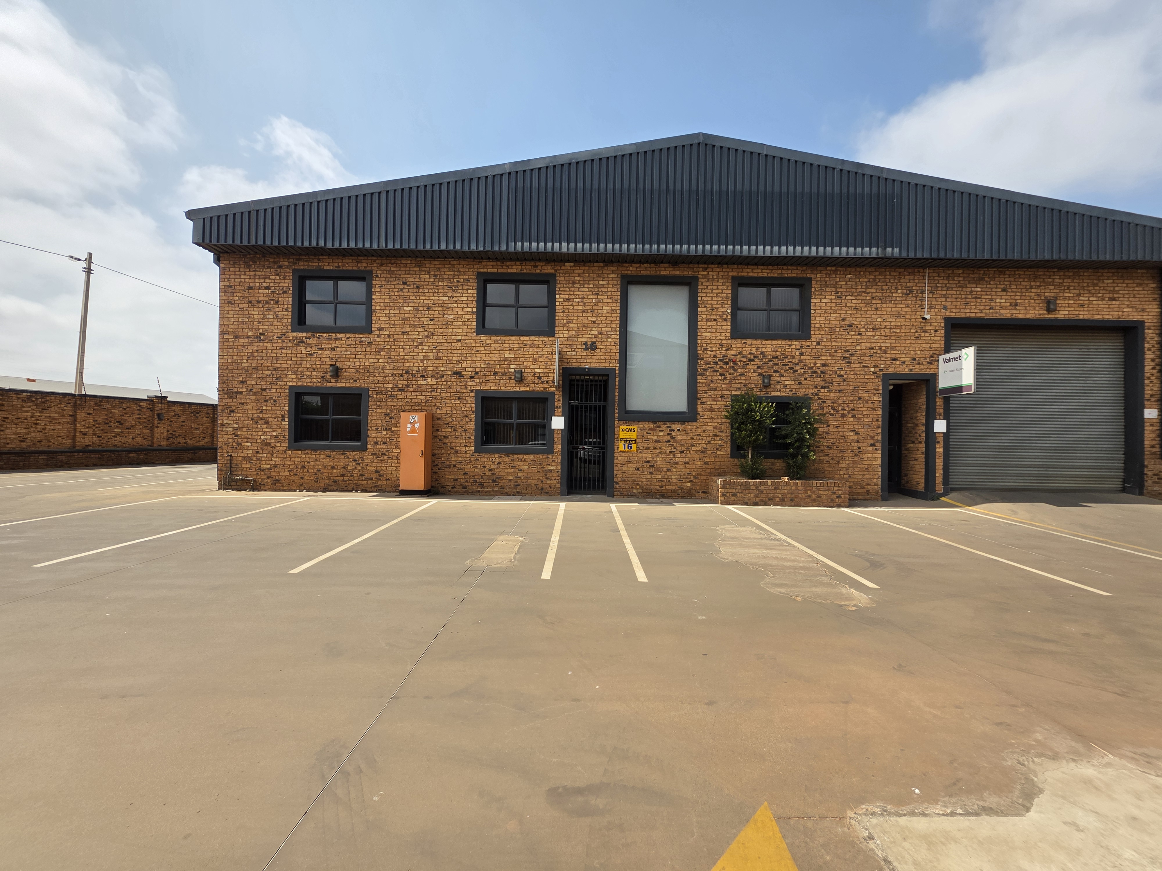 Streamlined logistics base in Brentwood Park, under 15 minutes from OR Tambo Airport and direct to R21/R24/N12 — 630m² warehouse with office, roller shutter and 63A 3‑phase power.
