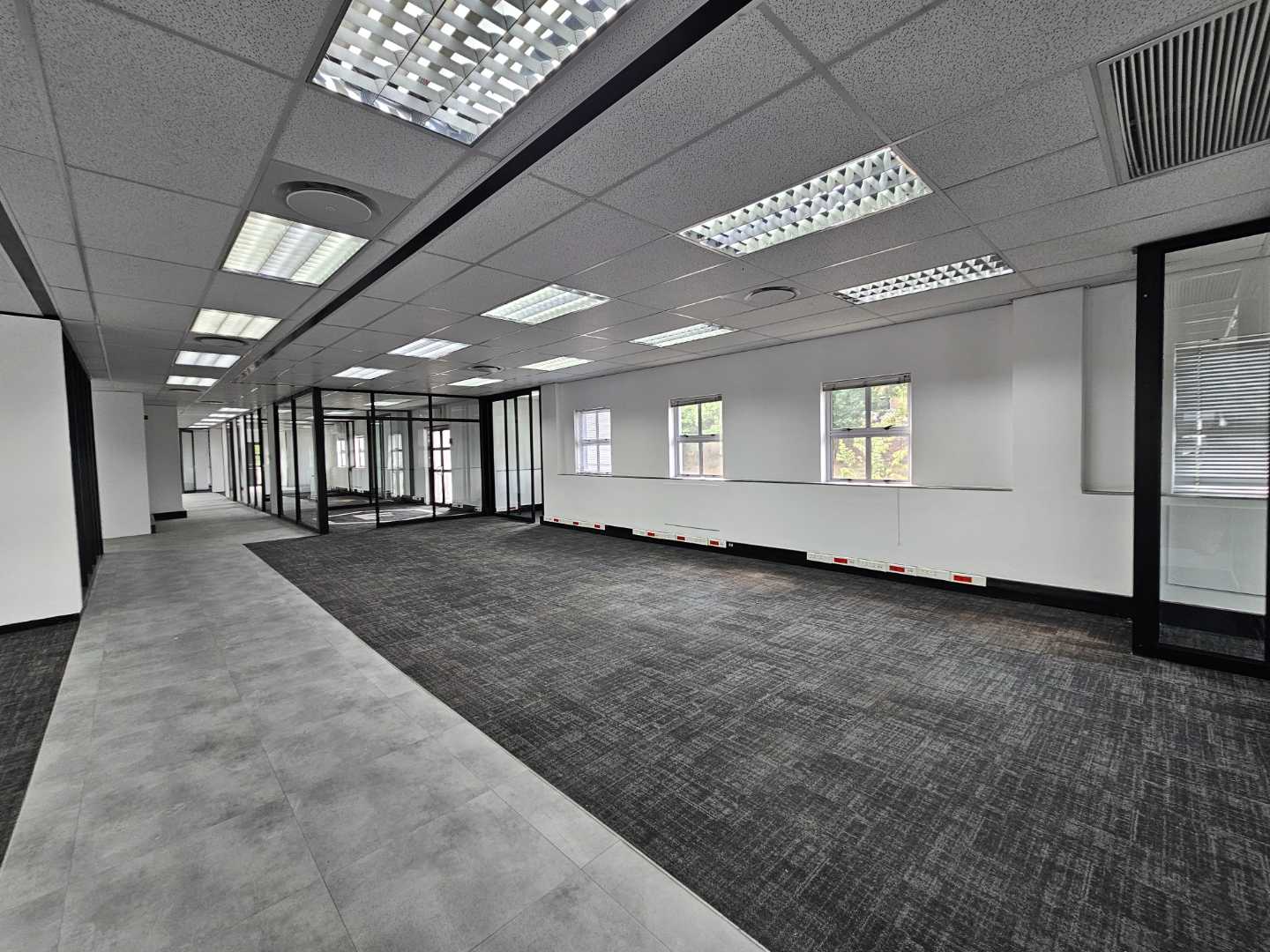 Located on the ground floor measuring proximity 1,940sqm. The Property offers well sized office space a portion has been whiteboxed and a portion has a fitout in place. Drywall which makes it easy to partition or create open plan working environment. Own private kitchen and. Shared Bathroom Facilities on each floor . Main downstairs Reception area has a staircase that leads to the ground floor and first floor offices. The Park offers tranquil working environment with 24 Hour Security and access-controlled boom gates to manage traffic flow into the park.