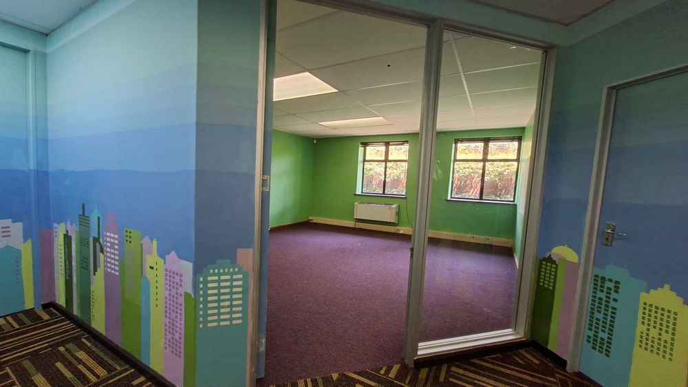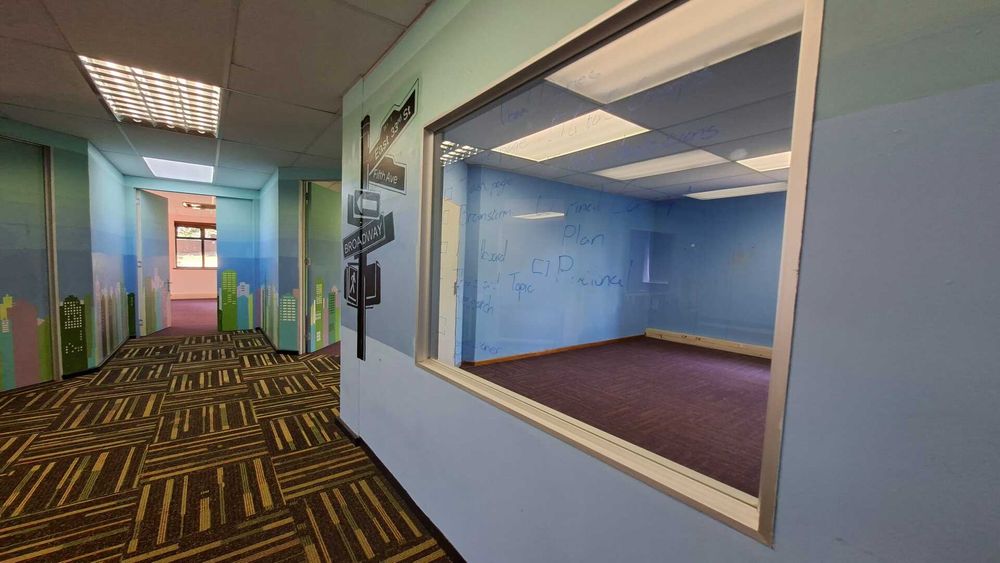 504 square metres of ground-floor office space to let at 26 Peter Place in Bryanston, situated to the right as you enter the building. The space was previously utilised as a day-care facility and offers a solid base for conversion into modern office accommodation. With renovations, the unit can be reconfigured to suit a variety of office layouts.
