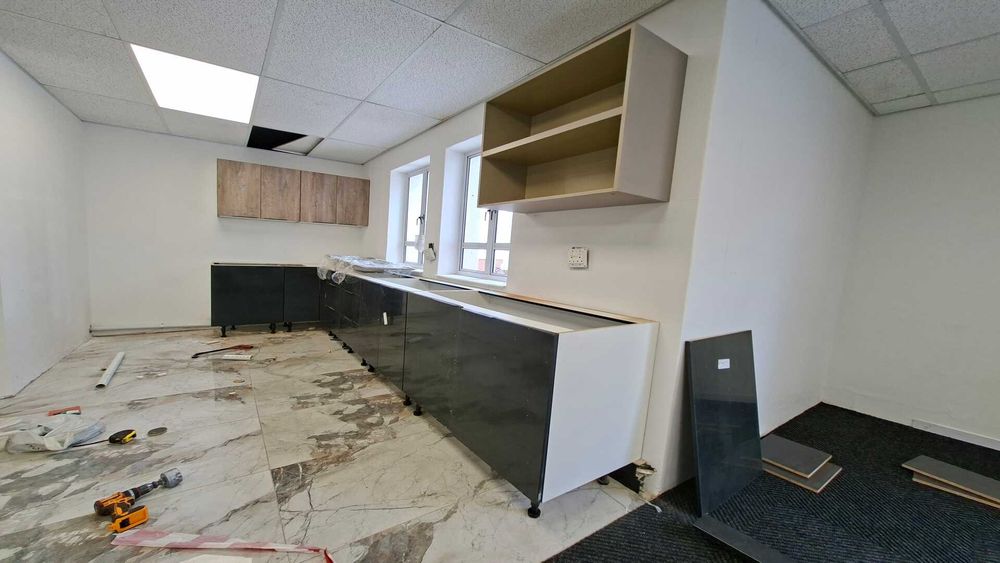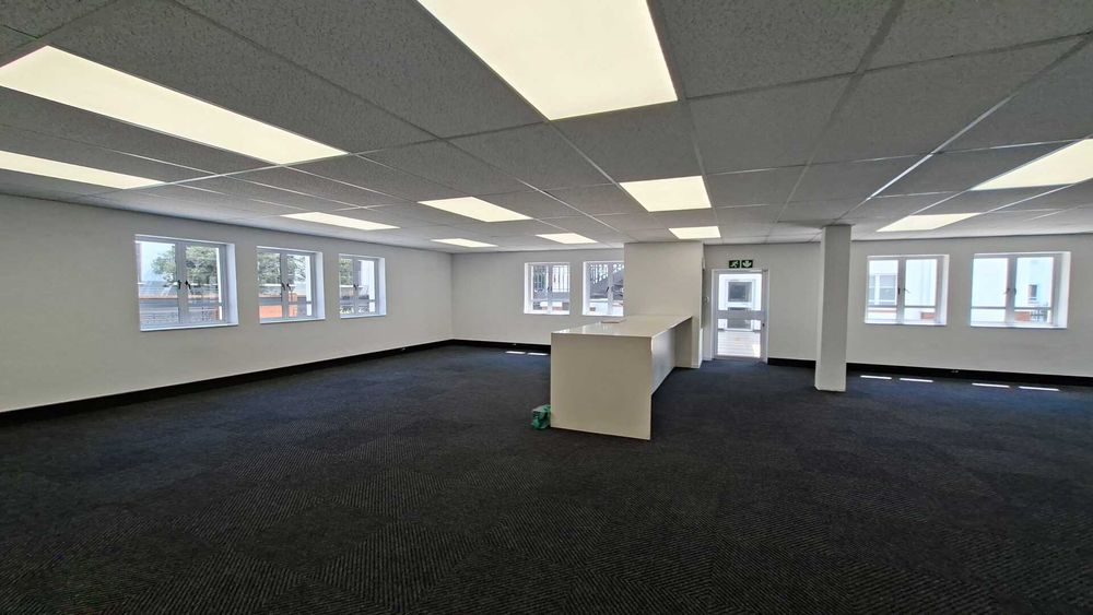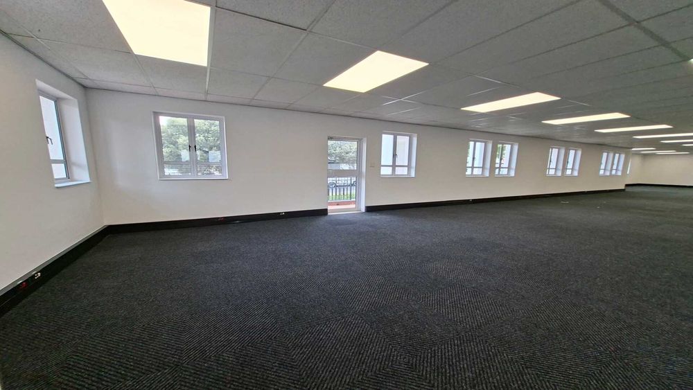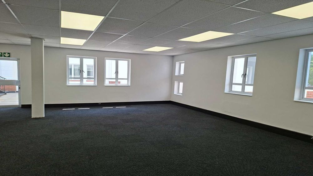 236 square metres of ground-floor office space available in Block B at Wedgewood Office Park, Bryanston. This recently renovated unit is move-in ready and fully carpeted throughout. The layout is predominantly open plan with minimal drywall partitioning, allowing for flexible workspace configuration. A newly upgraded kitchen is included within the unit, supporting day-to-day staff convenience.