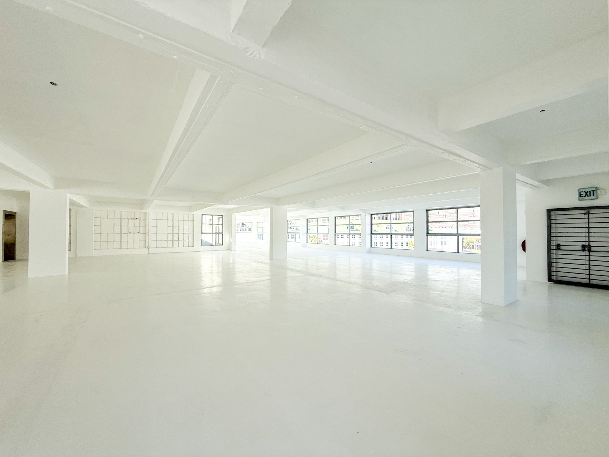- White-boxed interior with a large, open-plan layout ideal for collaborative office setups