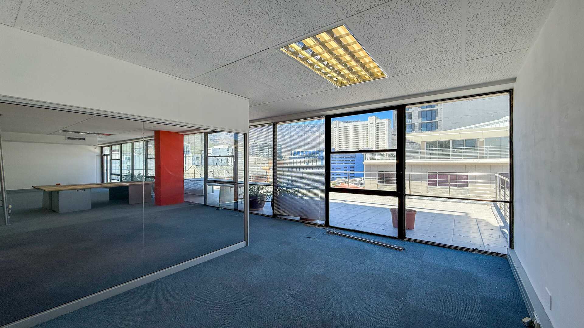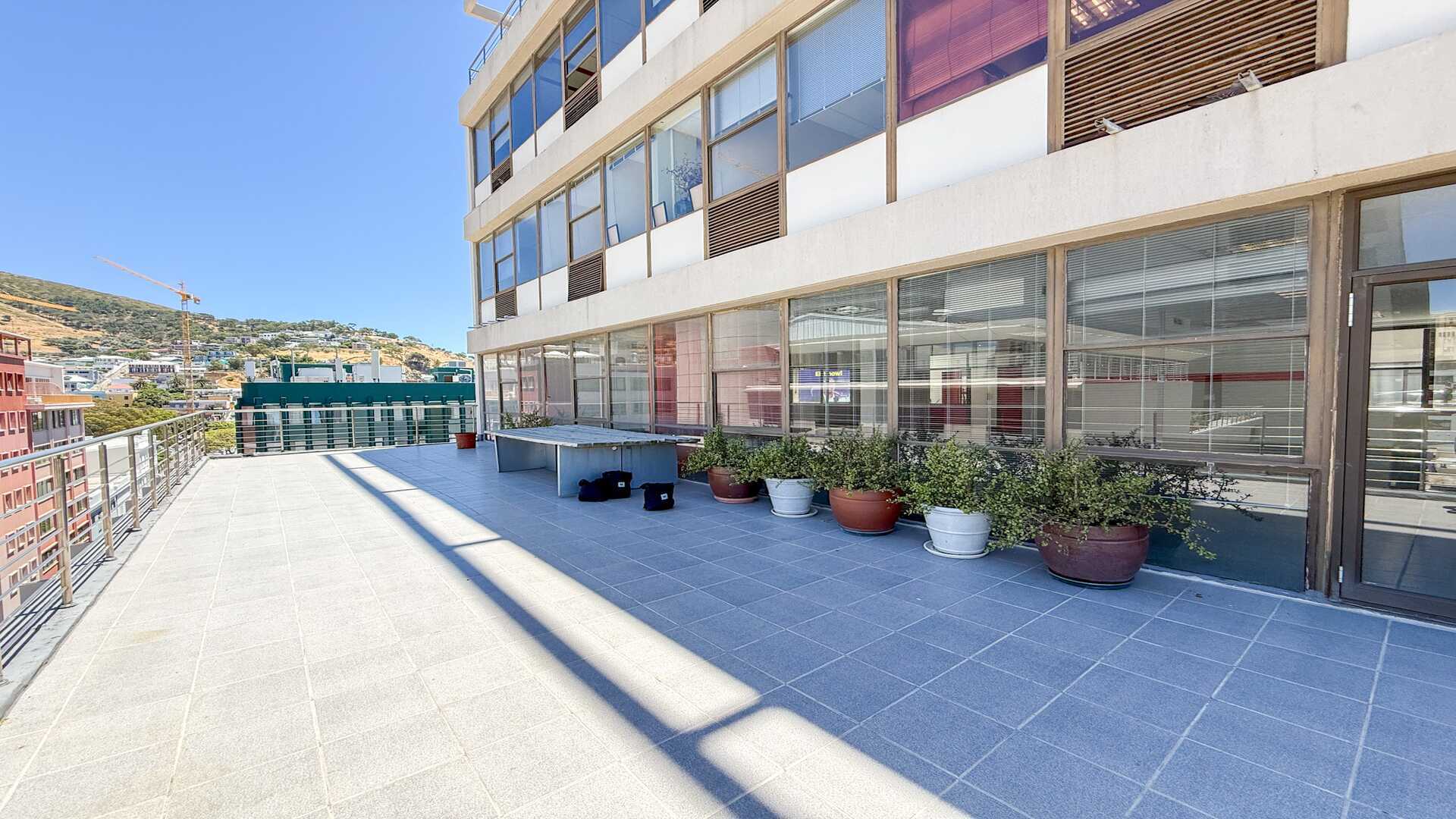 This 7th-floor space offers a unique blend of modern office functionality and unmatched outdoor terrace space — perfect for meetings, staff breaks, or hosting clients in a setting that truly captures the beauty of Cape Town.