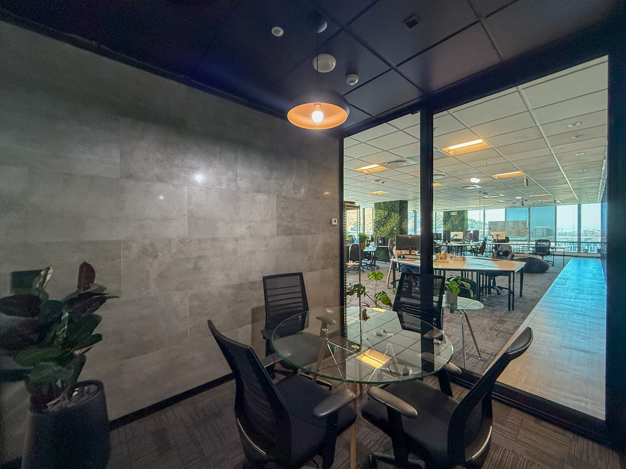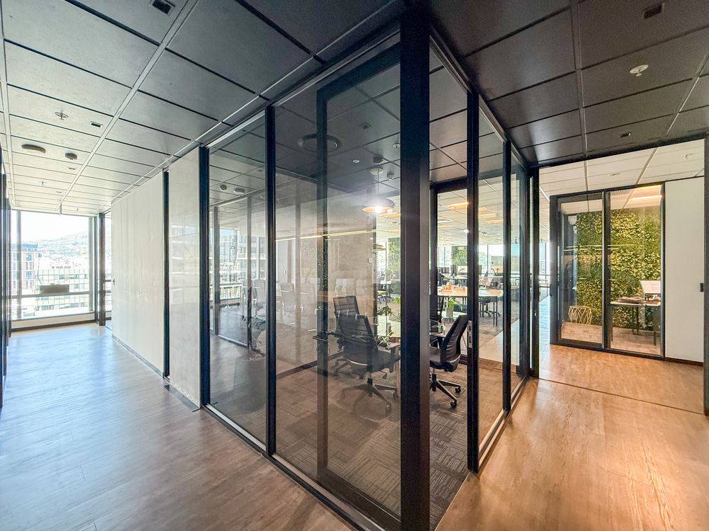 - Multiple glass-partitioned private offices