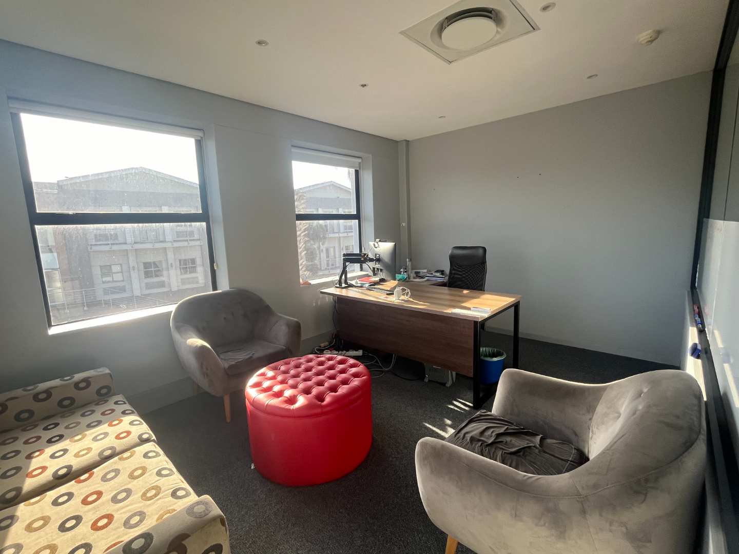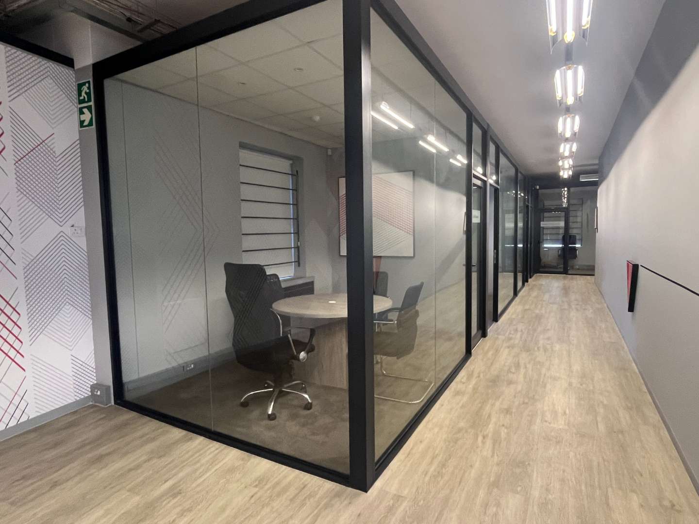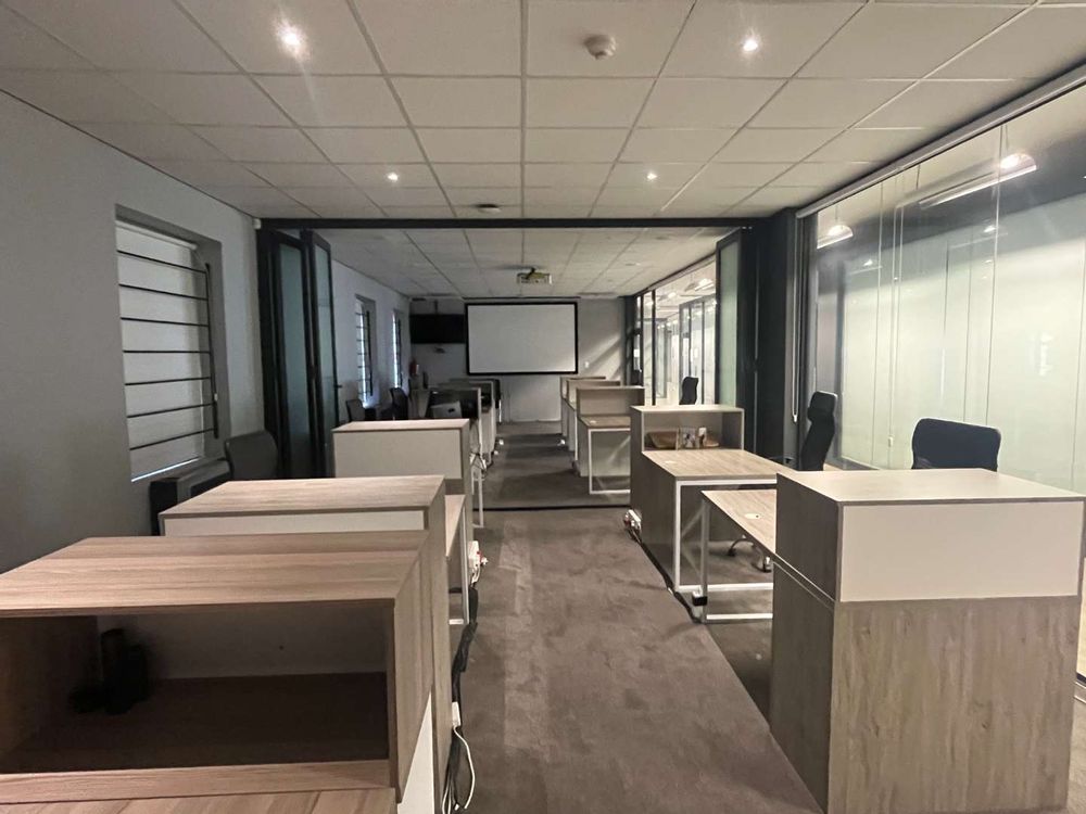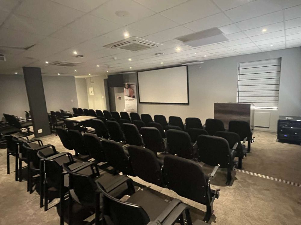 On the ground floor, you will find a range of meeting rooms, training facilities, and a purpose-built auditorium—all impeccably finished and adding significant value to the building. Moving to the first floor, the executive suite includes the CEO's office with picturesque views, a PA office, a spacious boardroom, a kitchen, and a large office with high ceilings and a private balcony.