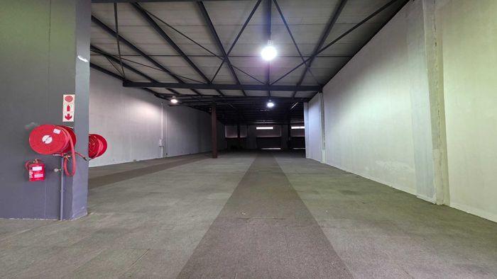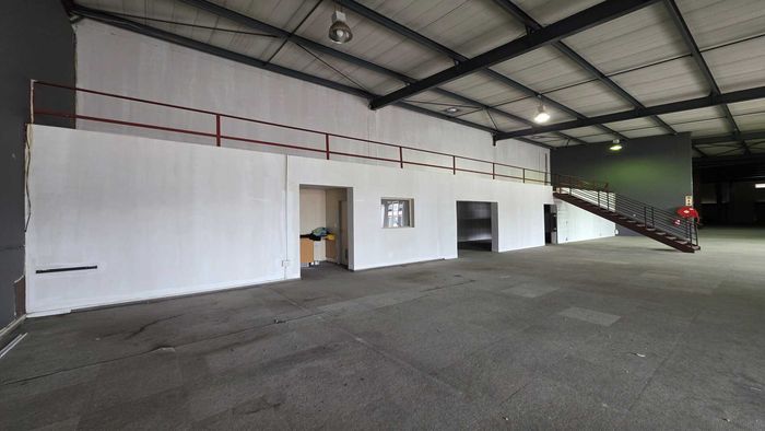 Work-ready unit near O.R. Tambo Airport with quick freeway access and 24-hour security; bright warehouse with first-floor office, roller shutter door and dedicated fibre.