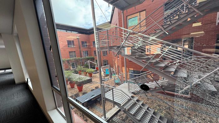 Work in Melrose Precinct's vibrant business hub, enjoying a modern lobby, balcony with Sandton views and a white-box layout ready for bespoke fit-out.