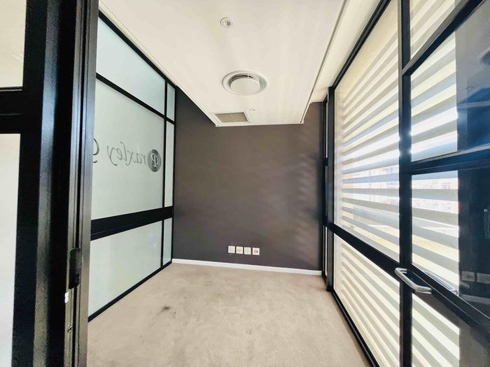 Work in a vibrant Melrose Arch hub with effortless dining and retail access; sleek third-floor office offers contemporary fit-out, open-plan collaboration and a private balcony for fresh-air breaks.