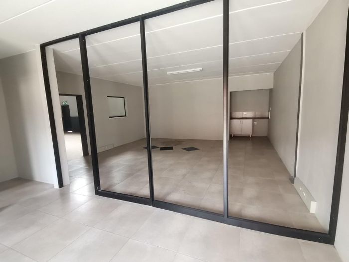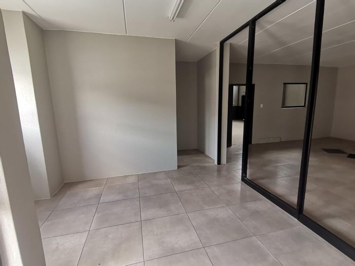 Efficient commercial hub in central Midrand offering seamless commuter access and secure, well-kept grounds — features double-volume office space, ablution facilities and high roller-shutter warehouse access.