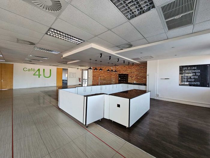 Work with lake views in Constantia Kloof and quick N1 access, close to Clearwater Mall. Features large canteen with outdoor seating, 24-hour security, generator backup and six bathrooms.