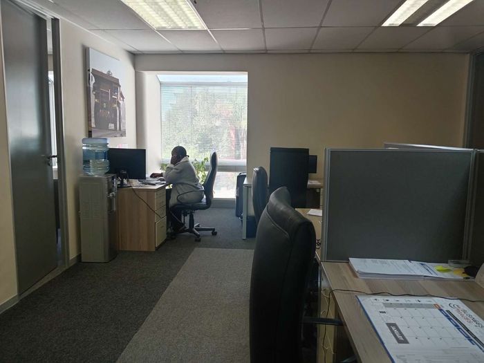 Elevate your team's work-life in vibrant Edenburg, Sandton — first-floor A-grade office with flexible layout, boardroom and private braai area, steps from the Gautrain bus stop.