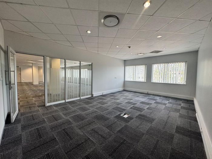 Thrive in Woodmead's vibrant business hub with easy highway access and retail nearby; ground-floor 381m² office in Western Woods features multiple partitioned offices and 24/7 security.