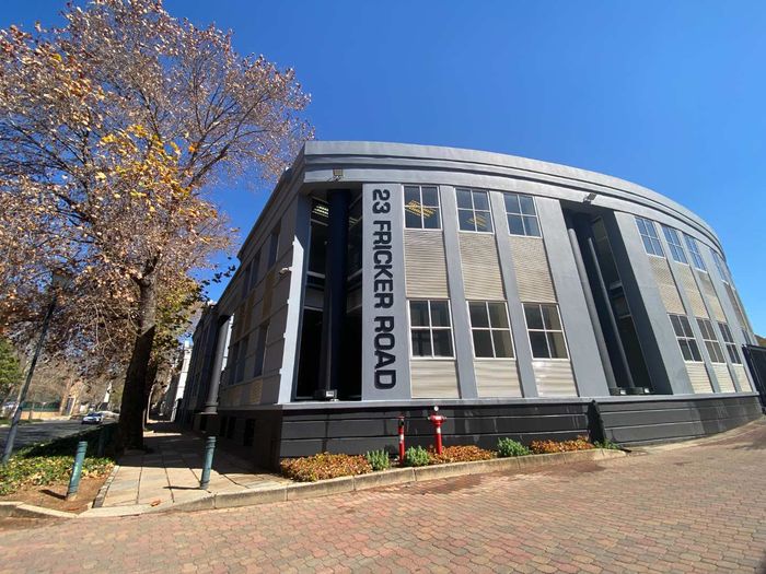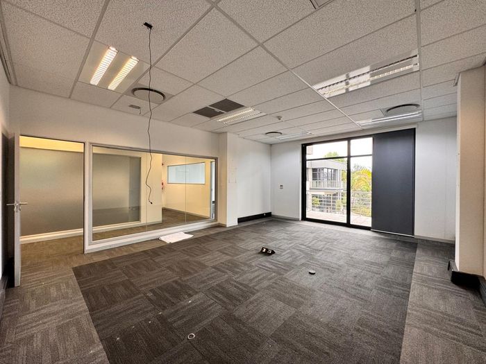 Elevate your team's workday with easy commuting and retail amenities in Woodmead, Sandton — first-floor office with private balcony, basement storeroom, 24/7 security and ample on-site parking.