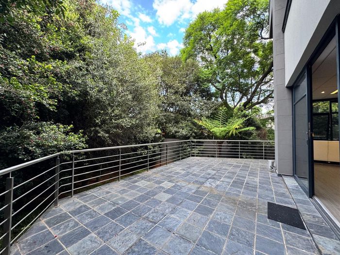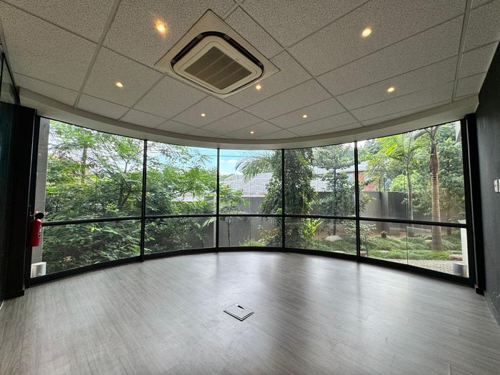 Work in Rivonia's vibrant Sandton hub with a standalone first-floor office offering flexible open-plan space, private balcony for breaks, and a kitchenette — ideal for growing teams.