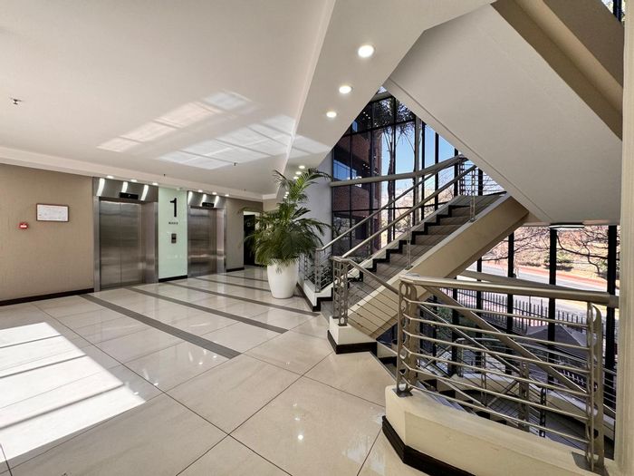 Elevate your business in Woodmead, Sandton with easy connectivity to OR Tambo and Sandton CBD. First-floor 70m² office features kitchenette, private office, open-plan area, on-site Mugg & Bean.