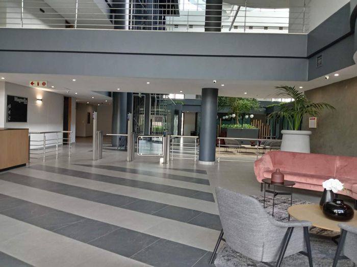 Work from a calm, productive first-floor A-grade office in Woodmead, Sandton, opposite Woodmead retail hub — fully fitted with landscaped gardens and quick highway and airport access.