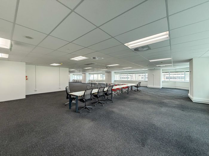 Elevate your team's workday with panoramic city and harbour views in Cape Town's Foreshore, steps from CTICC — adaptable 450 m² open-plan office with sunny courtyard and on-site cafés.
