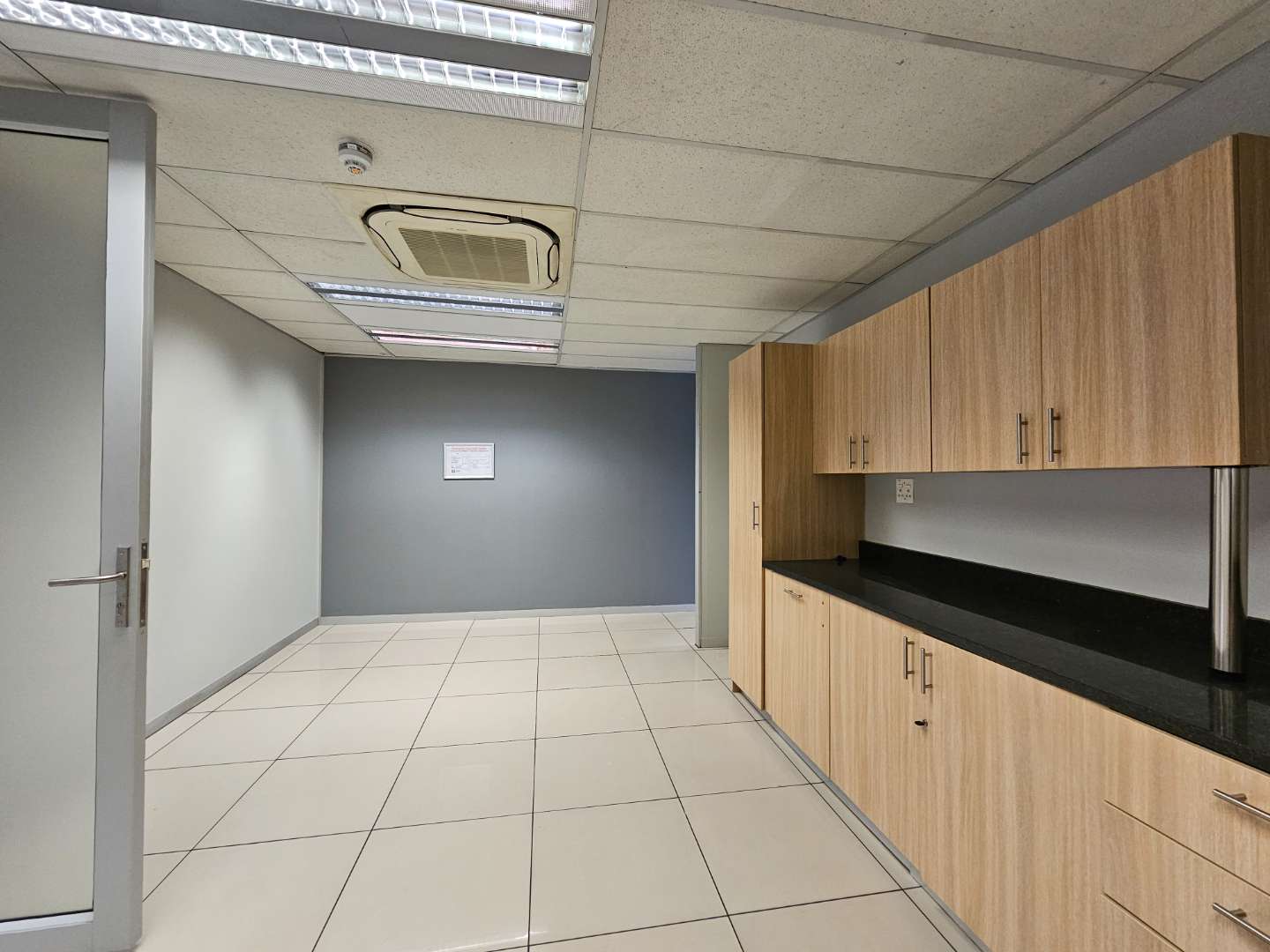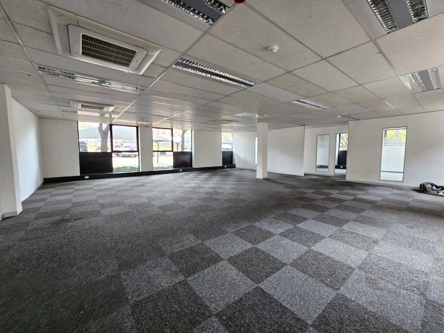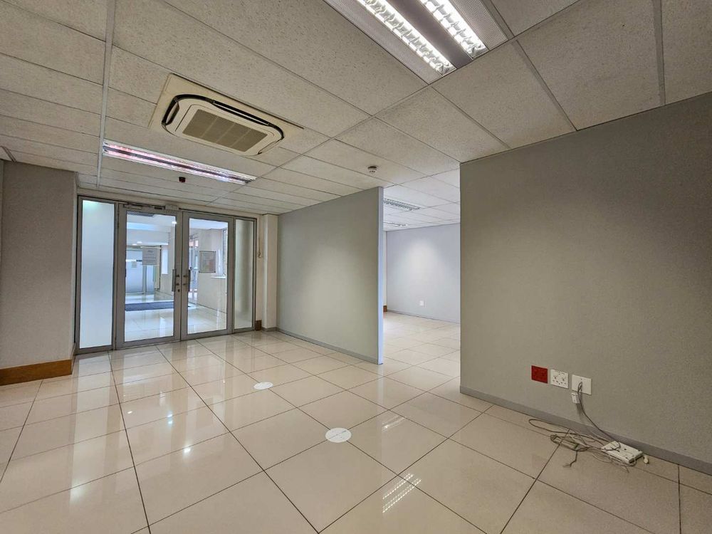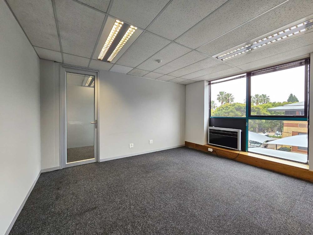 Parkview House features this spacious 587sqm office to let in Constantia Kloof within the popular and thriving Constantia Park Office Park located on the ground floor of this facebrick office building. The unit shares a common entrance with well maintained and clean common ablution facilities with it's own kitchenette. The unit has a large welcoming reception area, giving access to a large open plan office setup with multiple smaller, closed offices. The carpeted office provides a 10 seater boardroom with large windows allowing for ample natural light and ventilation into the unit as well as a temperature control system and a high speed fibre internet infrastrucure.