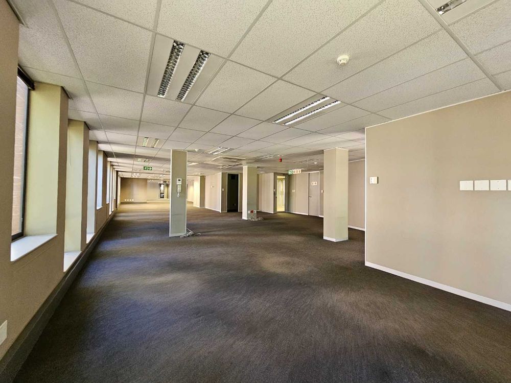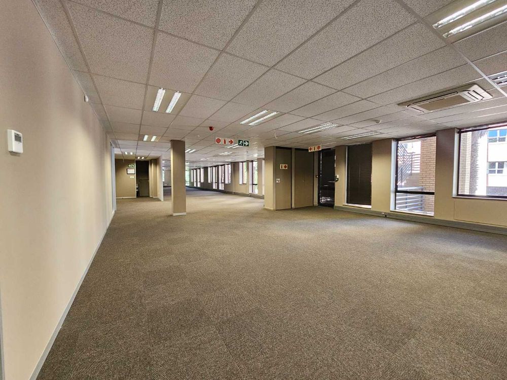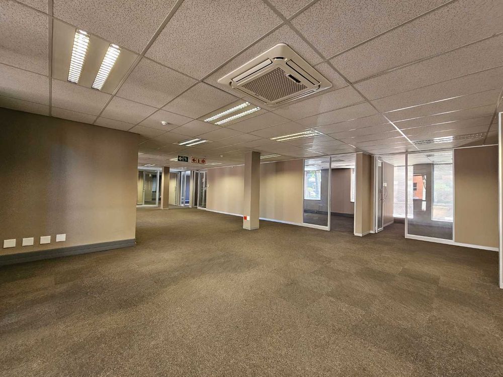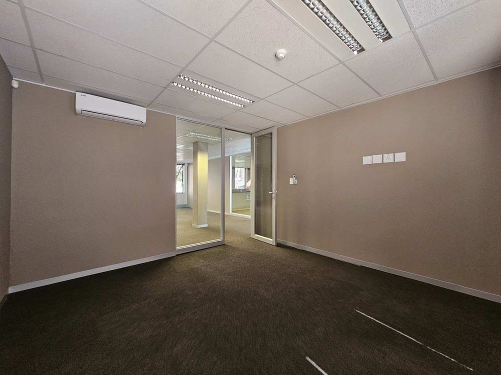 Island House, Located at the security Boom gate offers this immaculate A-Grade ground floor office space to rent. The unit on offer features a spacious tiled reception area, leading towards a large open plan office setup with smaller closed, executive offices as well as a large 10 seater boardroom. The entire office is under temperature control and offers a high speed fibre internet infrastructure. Ample open, undercover and basement parking facilities are available and the entire office park is under access card control systems. The unit has it’s own spacious and well maintained kitchenette and break room and offers ample common ablution facilities.