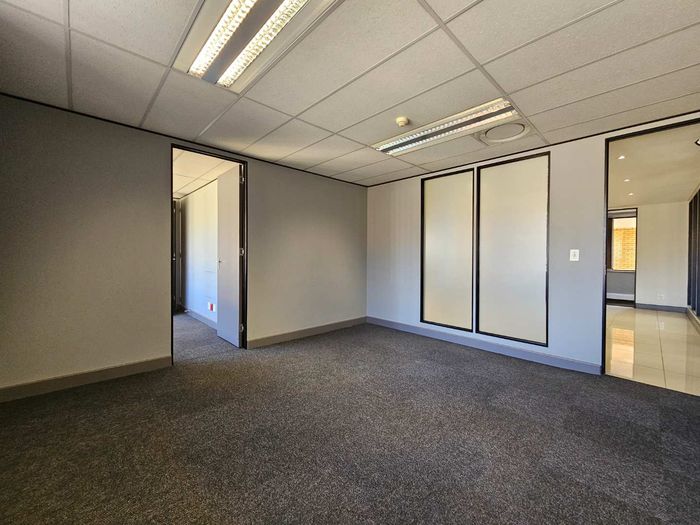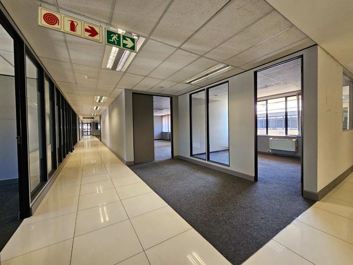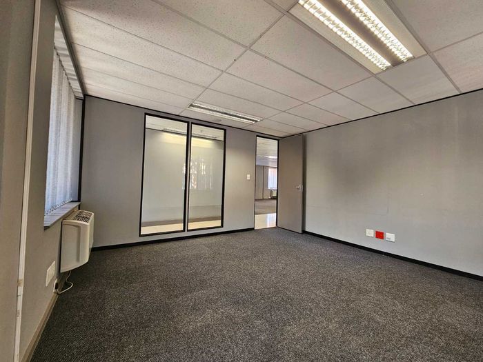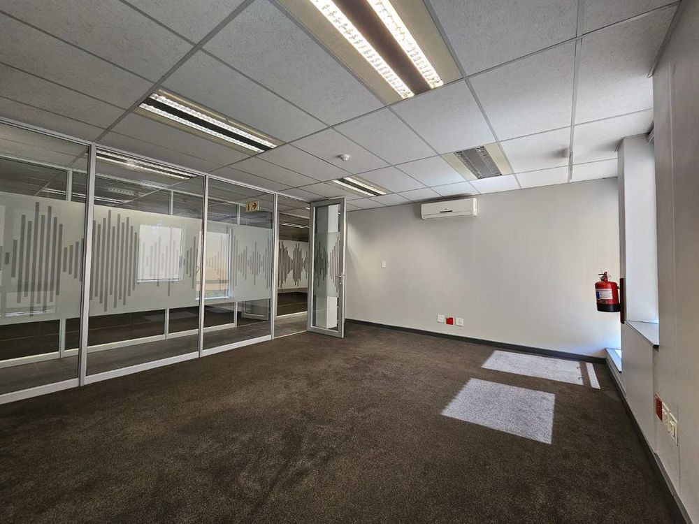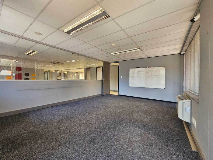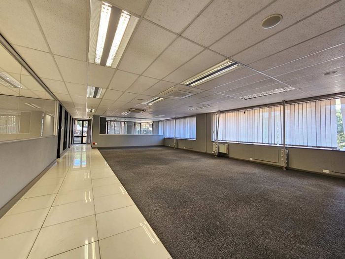 Cascade House features this spacious 722m2 office to let in Constantia Kloof within the popular and thriving Constantia Park Office Park located on the ground floor of this facebrick office building. The unit shares a common entrance with well maintained and clean common ablution facilities with it's own kitchenette. The unit has a large welcoming reception area, giving access to a large open plan office setup with multiple smaller, closed offices. The carpeted office provides a 10 seater boardroom with large windows allowing for ample natural light and ventilation into the unit as well as a temperature control system and a high speed fibre internet infrastrucure.