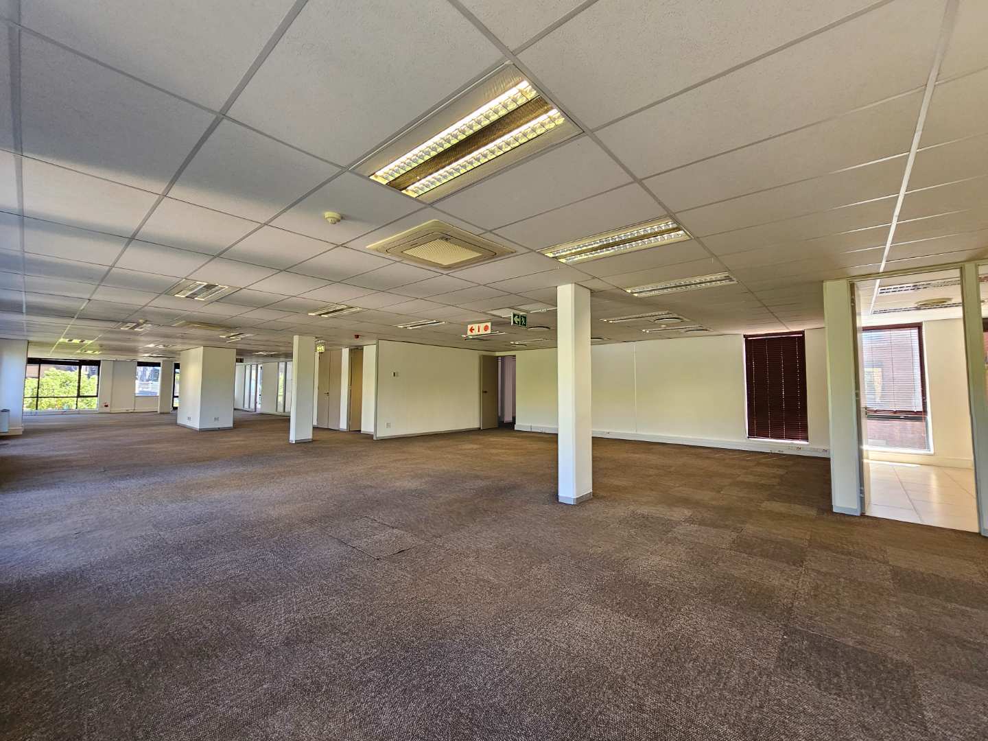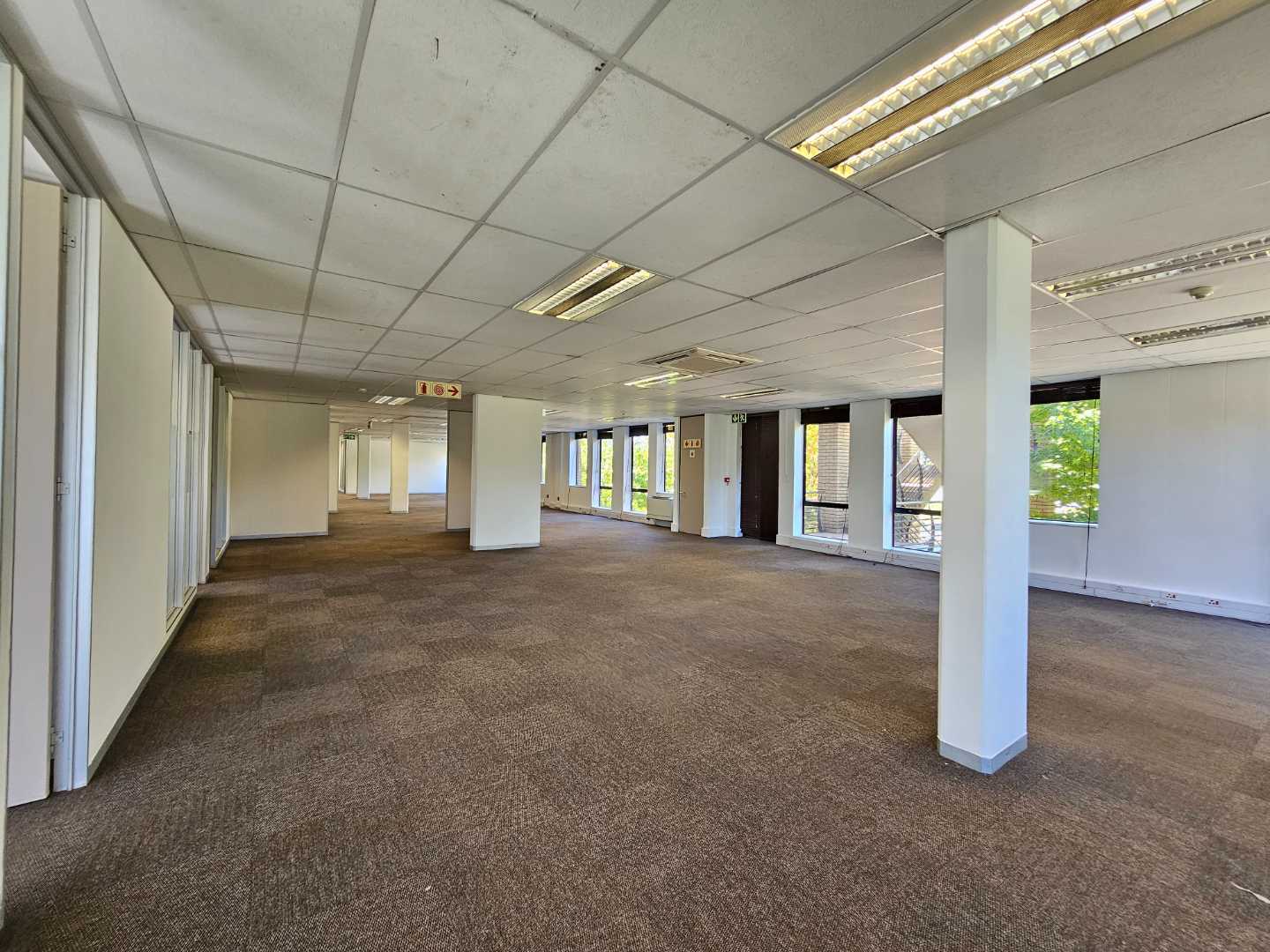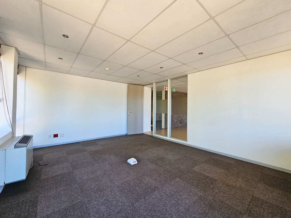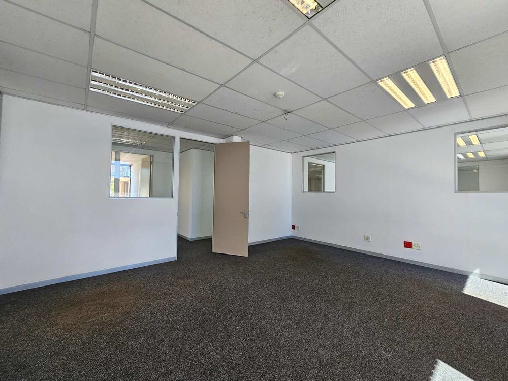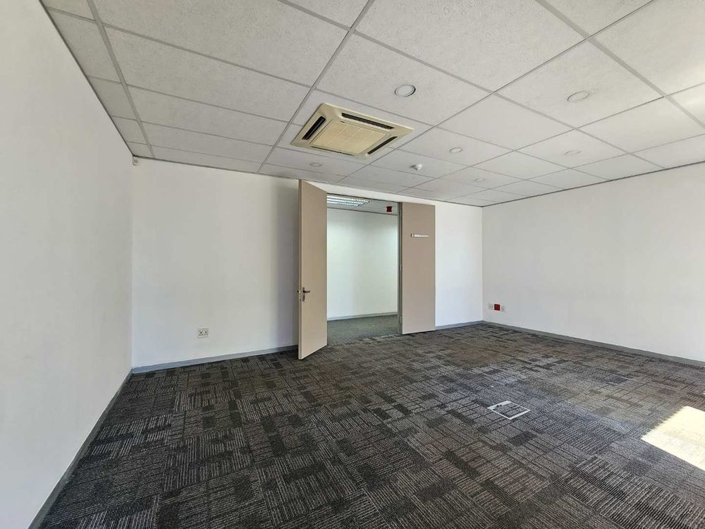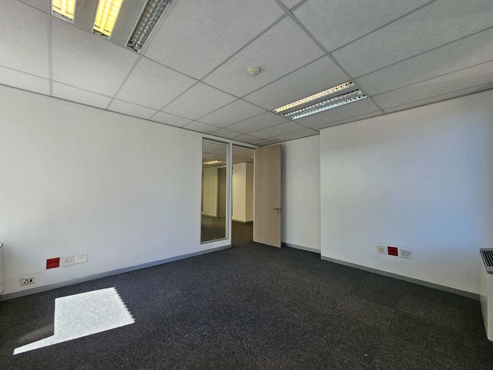 Cycad House offers this spacious and secure first floor office space to let in Constantia Kloof, measuring approximately 1218m2. The Carpeted office features 2X entrances and a selection of small private offices, a large and welcoming reception area, 3X kitchenettes and communal ablution facilities on each floor. The office features two boardrooms and smaller meeting rooms across the office. The unit offers an exceptional view of the N1 freeway and is fully equipped with a temerature control system.