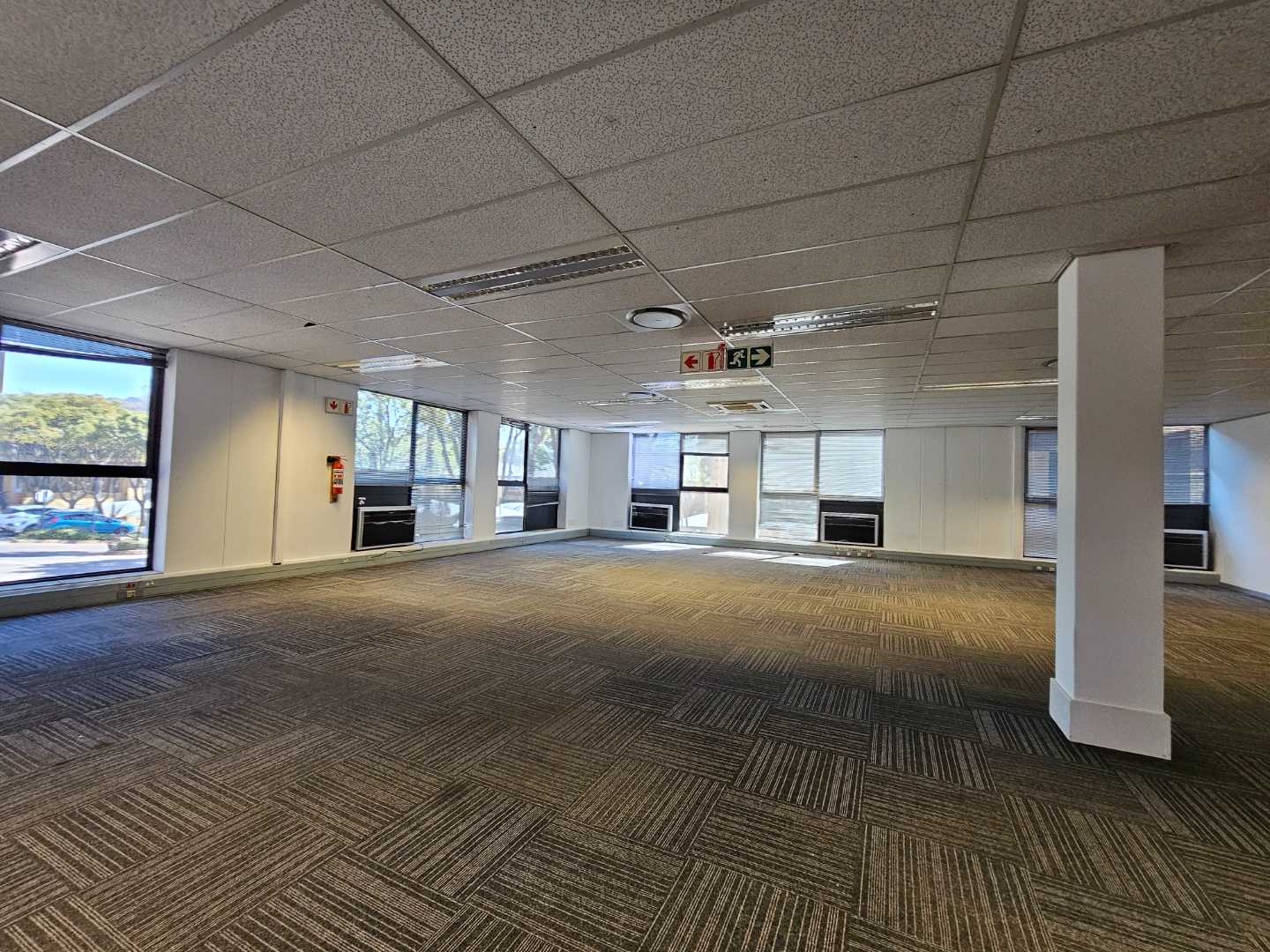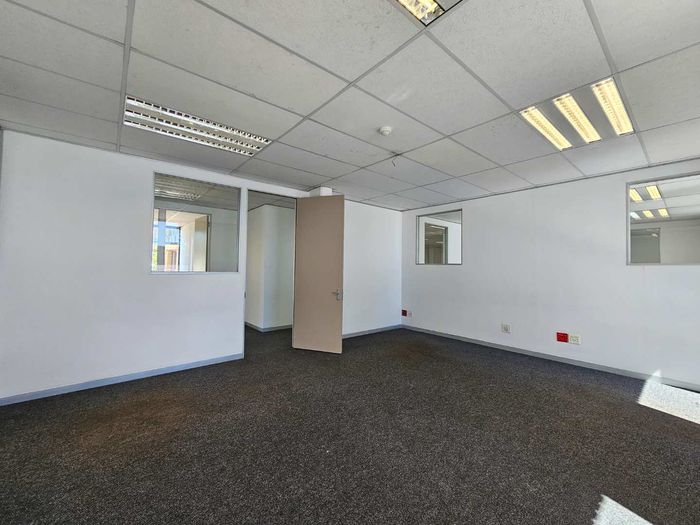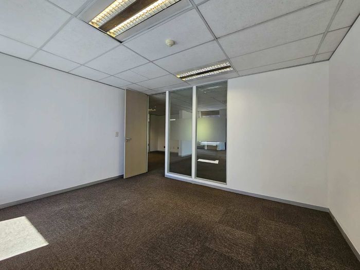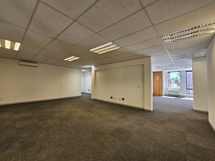 Hillview House features this spacious 1218m2 first floor office to rent in Constantia Kloof within the popular and thriving Constantia Park Office Park located on the ground floor of this face brick office building. The unit shares a common entrance with well maintained and clean common ablution facilities with it's own kitchenette. The unit has a large welcoming reception area, giving access to a large open plan office setup with multiple smaller, closed offices. The carpeted office provides a 10 seater boardroom with large windows allowing for ample natural light and ventilation into the unit as well as a temperature control system and a high speed fibre internet infrastructure.