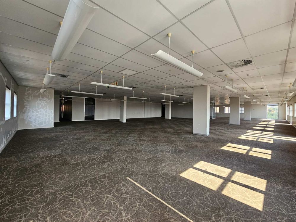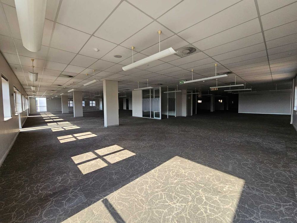 This spacious second floor office to rent in Constantia Kloof, measuring an approximate of 5300m2 with a welcoming recption area, a large, well maintained canteen area with a large built in kitchen as well as outside seating with an amazing view of the Constantia Kloof Lake. The premises features ample emergency exits as well as roof access available. The premises offers it's own built in temperature control systems as well as a stable, high speed fibre internet connection.Each floor is equipped with it's own kitchenette and modern finish ablution systems