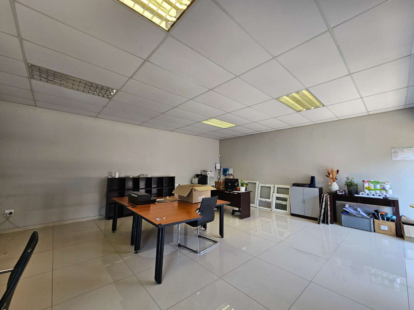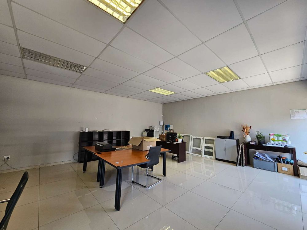 Stand 65 unit 3 features this well maintained 812m2 warehouse to rent in Cosmo Business Park with excellent height to the eaves up to 5m, a neat and welcoming tiled reception area as well as a modern finish double storey office component. Large windows allows for excellent natural light into the premises. The spacious warehouse is accessible via 1X4m high roller shutter door and offers 120 Amps 3 phase electrical power supply, making this unit ideal for manufacturing. The unit offers ablution and kitchenette facilities in the office and warehosue components. Ample parking facilities are made available in the large paved communal yard, allowing for excellent truck articulation.