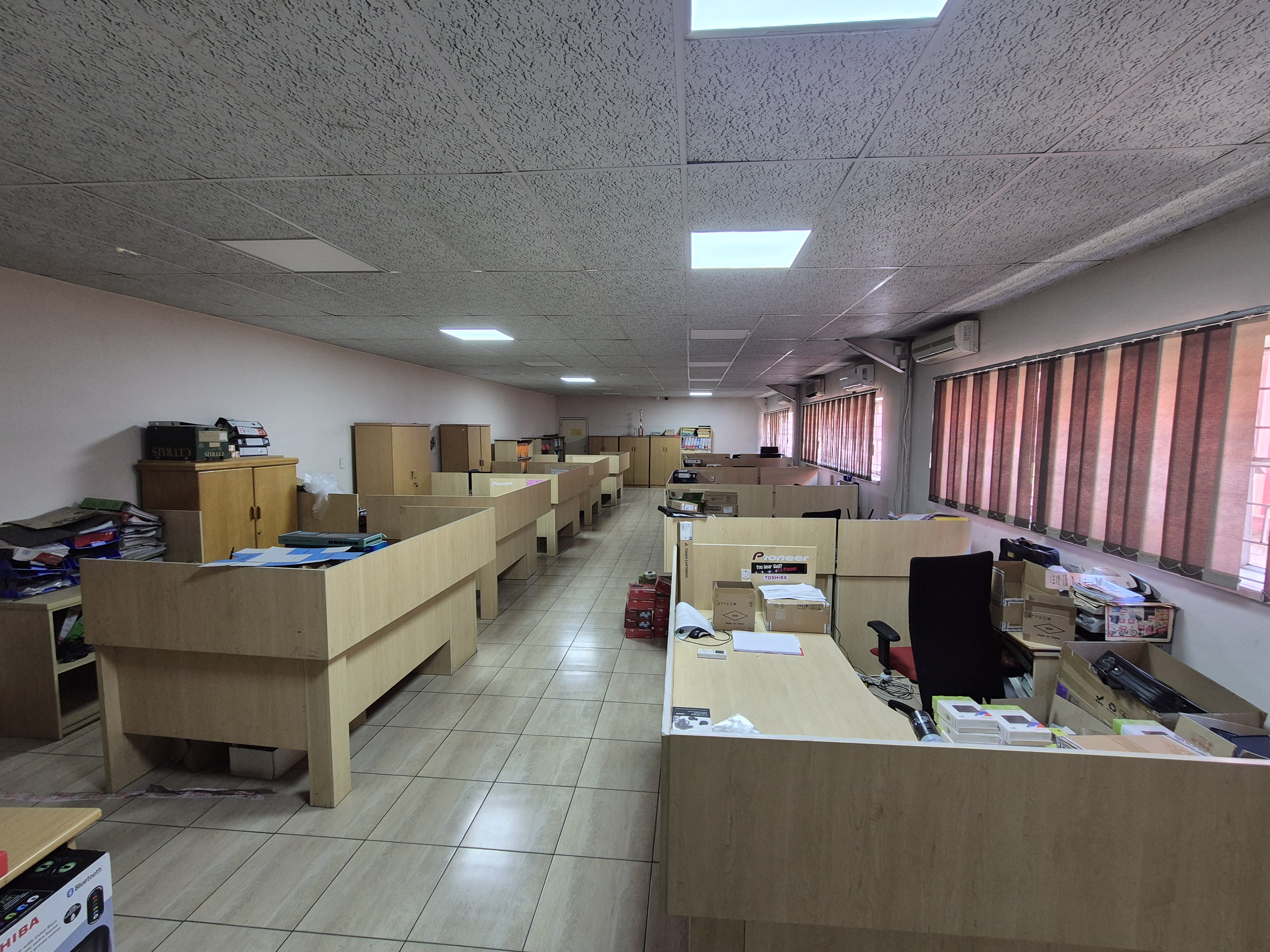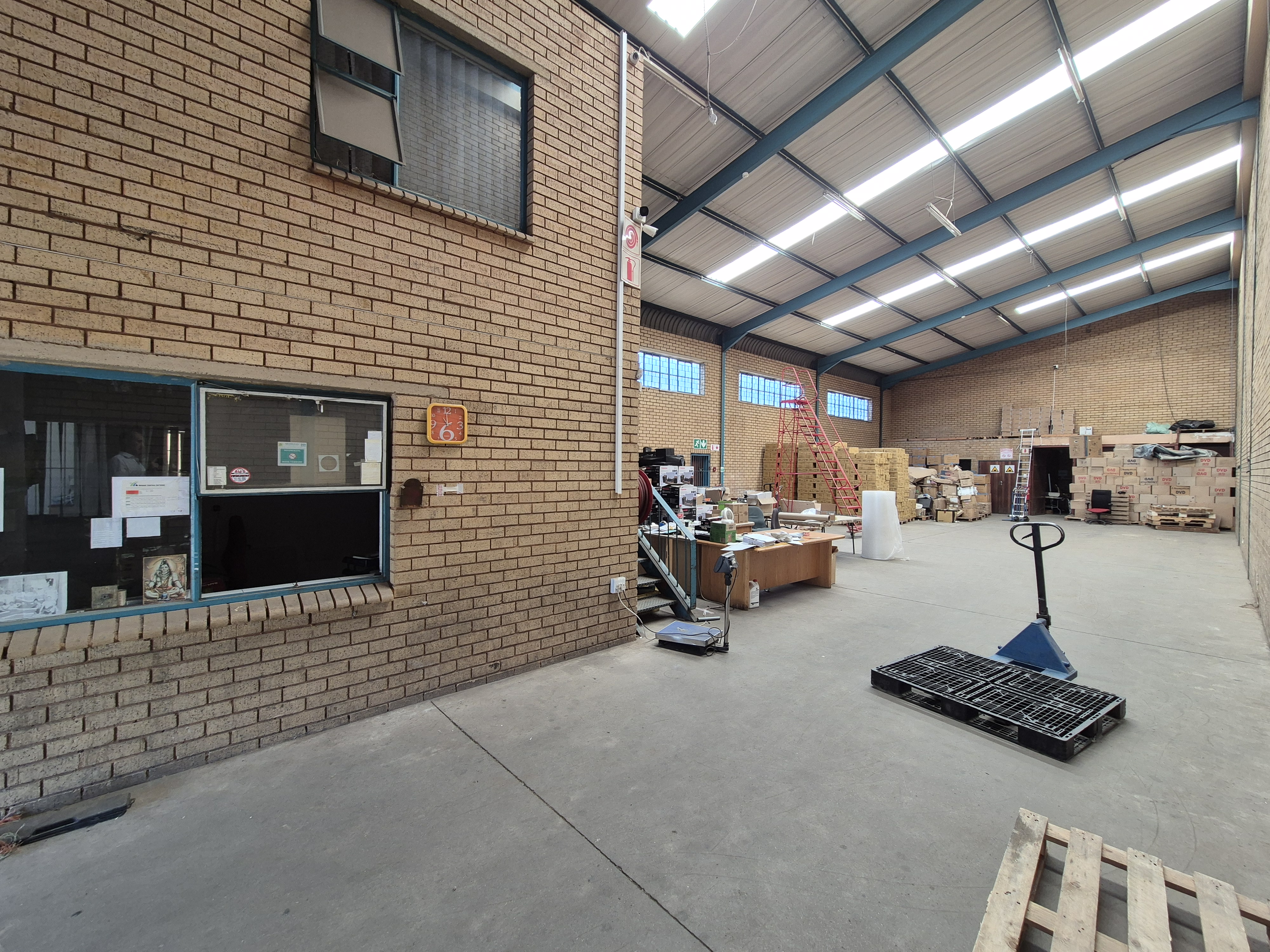 Each section of the property features a welcoming reception area, well-designed offices, a boardroom overlooking the warehouse floor, and neat kitchen and ablution facilities. The space is designed to provide a professional, comfortable, and efficient working environment. The warehouse boasts excellent internal height, ideal for racking, manufacturing, or light industrial use, and is powered by 3-phase electricity, supporting a range of industrial operations.