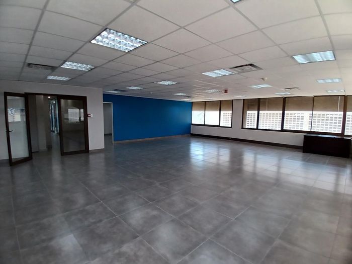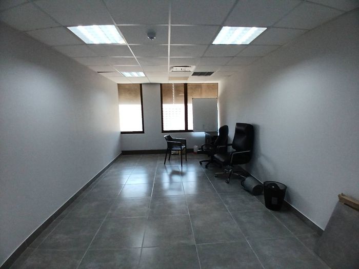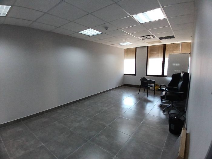 The office features a large open-plan area, perfect for collaborative work and team meetings. The building offers a communal kitchen on the same floor, providing a convenient space for refreshments and casual interactions. Additionally, communal ablution facilities are available for your convenience.
