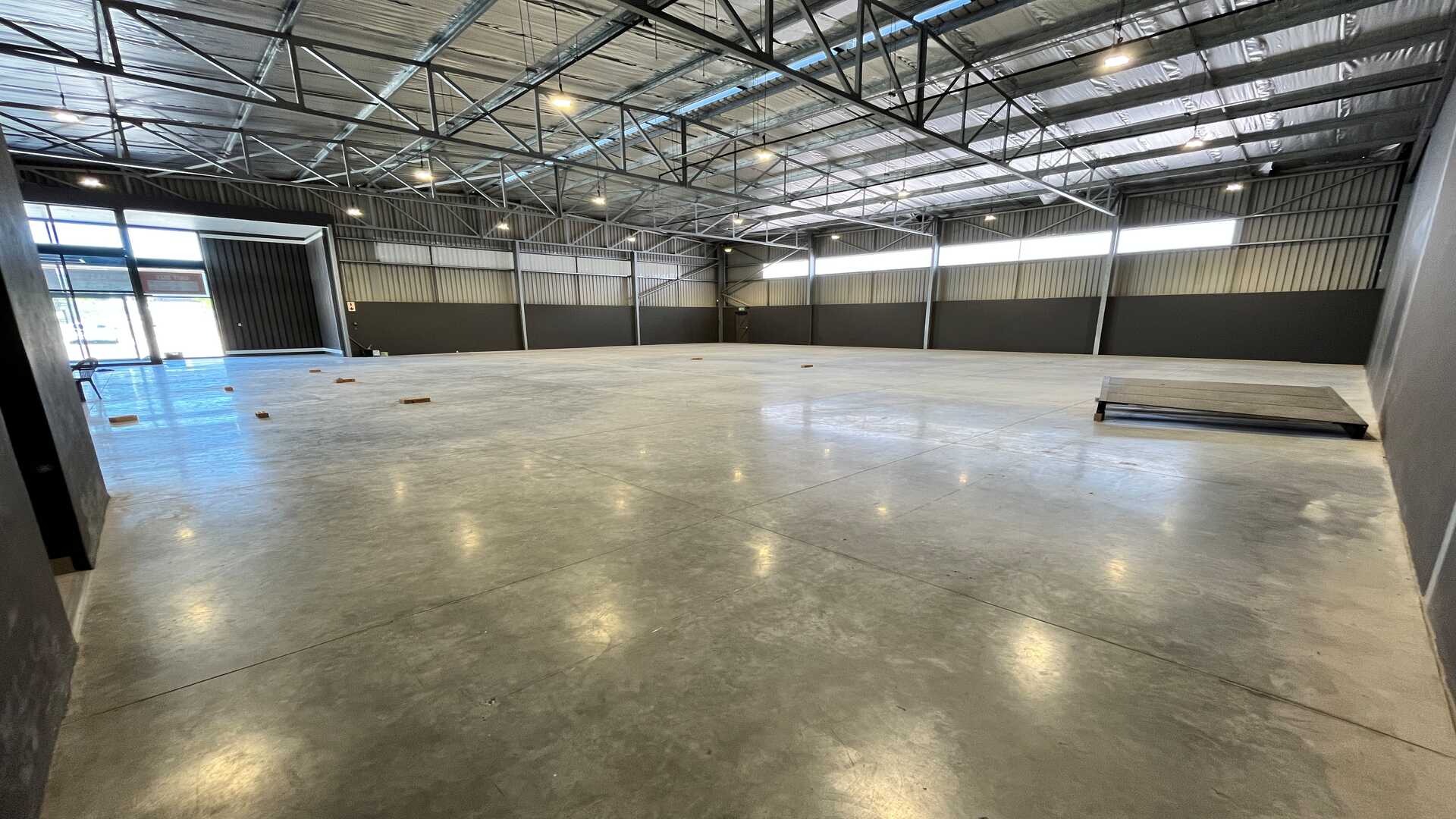 This striking modern industrial facility is designed for maximum exposure and strong professional presence. A prominent corner glass-front entrance creates an impressive first impression, while the high-volume clear-span warehouse provides versatile space ideally suited to storage, distribution, or light industrial operations. The layout offers a flexible reception area (TBD), two toilets, a kitchen area, and a roller shutter door to ensure smooth and efficient loading and dispatch. With 3-phase electricity and post-paid water and power, the property is fully equipped to meet demanding operational needs.