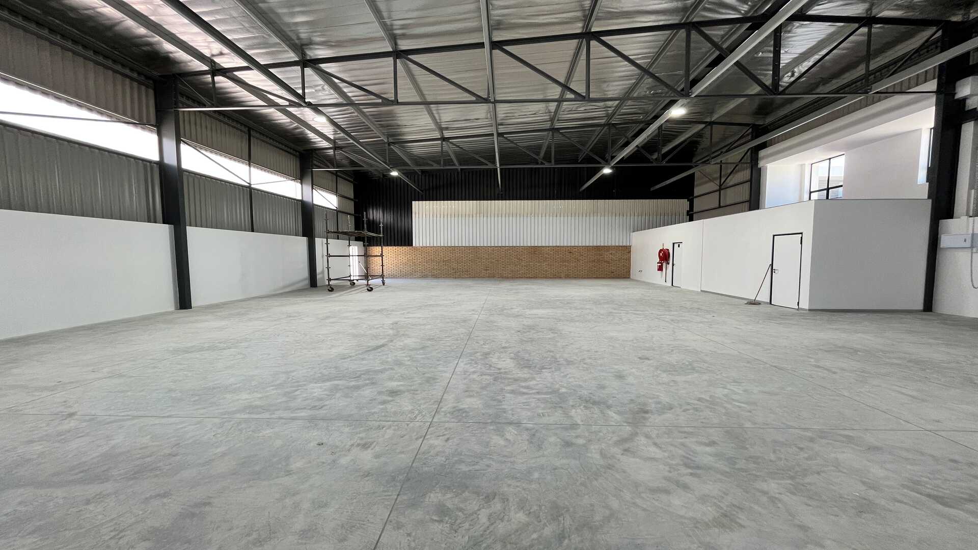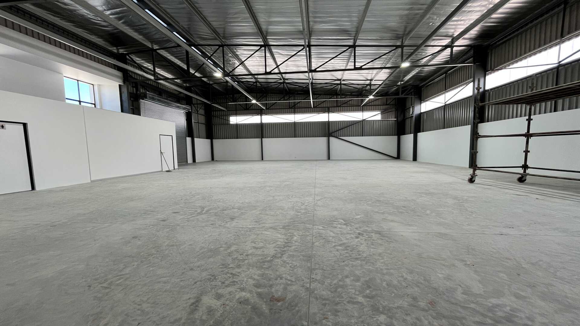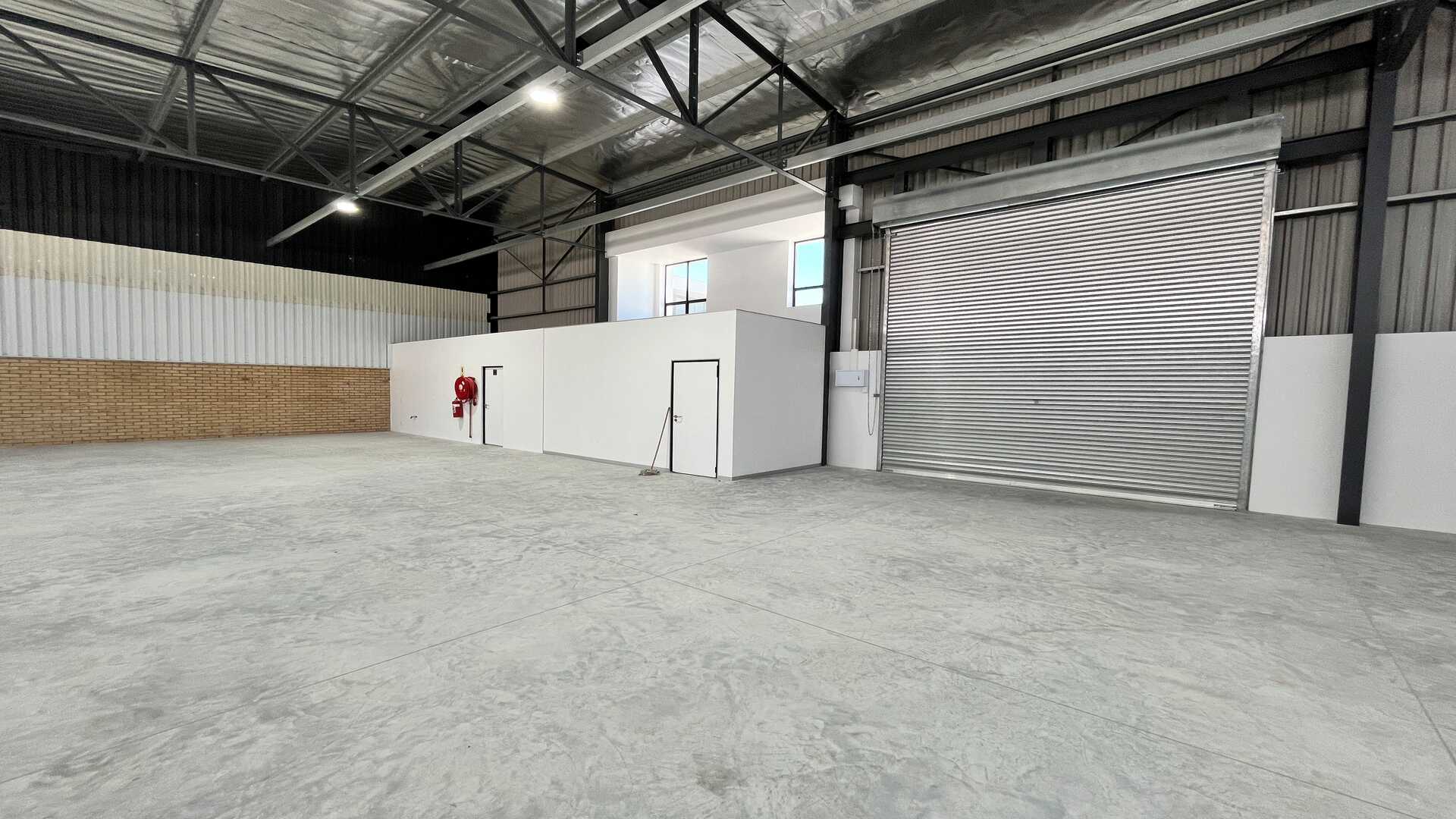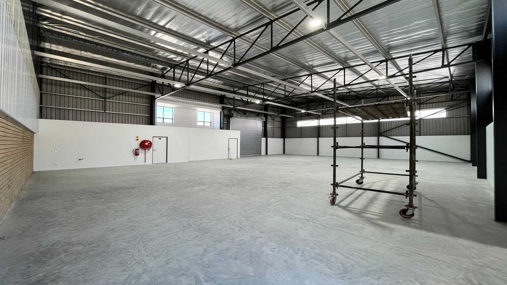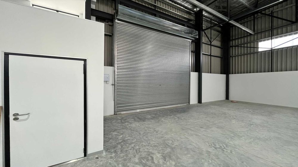 Showcasing a striking modern architectural design with strong visual presence, ideal for businesses seeking a professional and prominent industrial address. The high-volume clear-span warehouse provides versatile, unobstructed space perfectly suited for storage, distribution, or light industrial operations. A well-appointed reception/office area (with optional air conditioning) offers a comfortable administrative space, complemented by two toilets and a kitchen area for staff convenience. A roller shutter door ensures efficient loading and dispatch functionality, while 3-phase electricity supports demanding operational requirements.