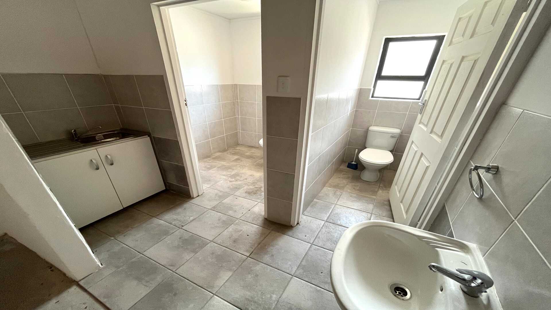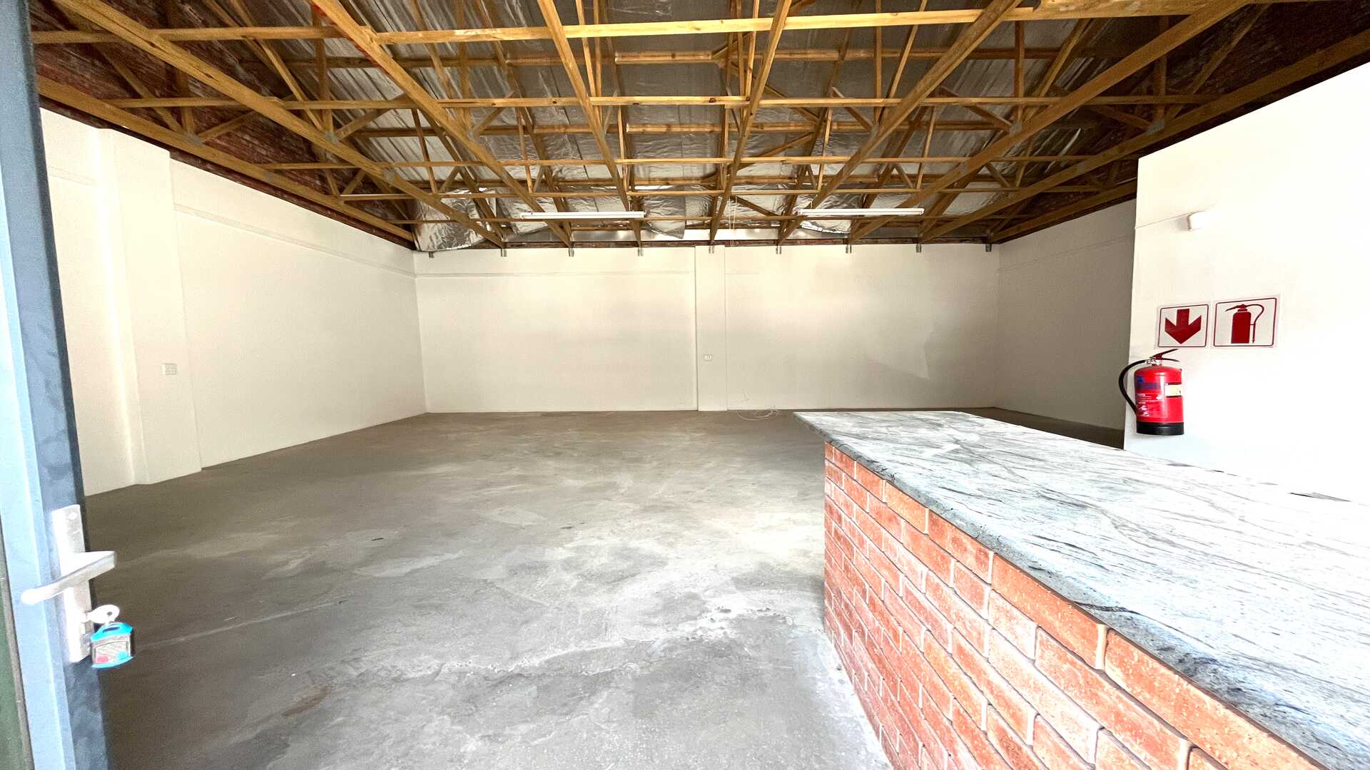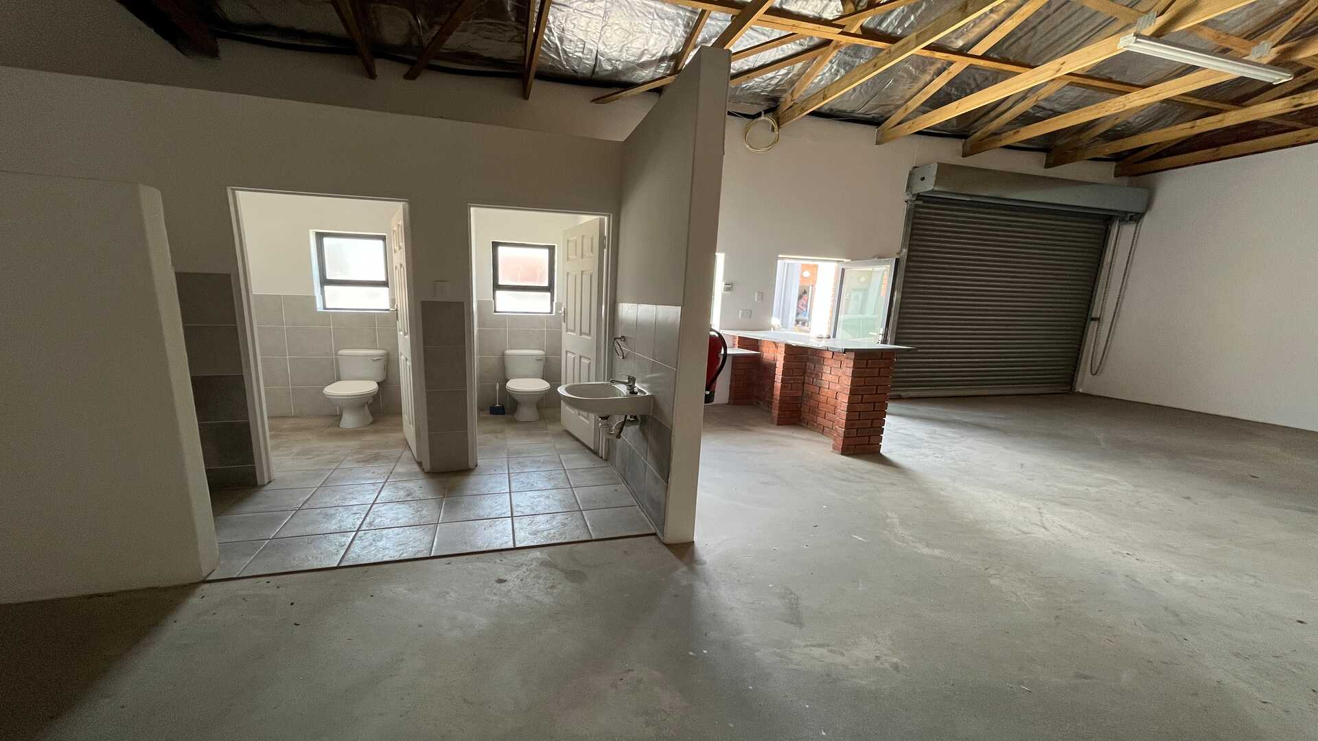 The space includes a professional reception area, two bathrooms, and a kitchenette, making it both practical and client-friendly. With prepaid electricity and an alarm system in place, this unit offers a cost-effective and secure solution for businesses seeking a compact, well-positioned industrial space.