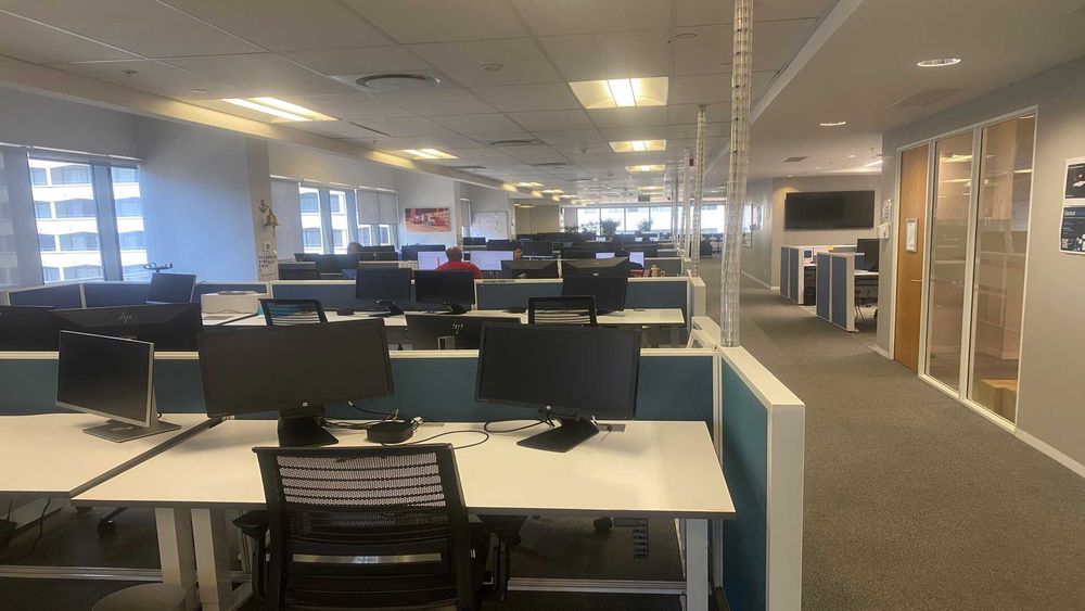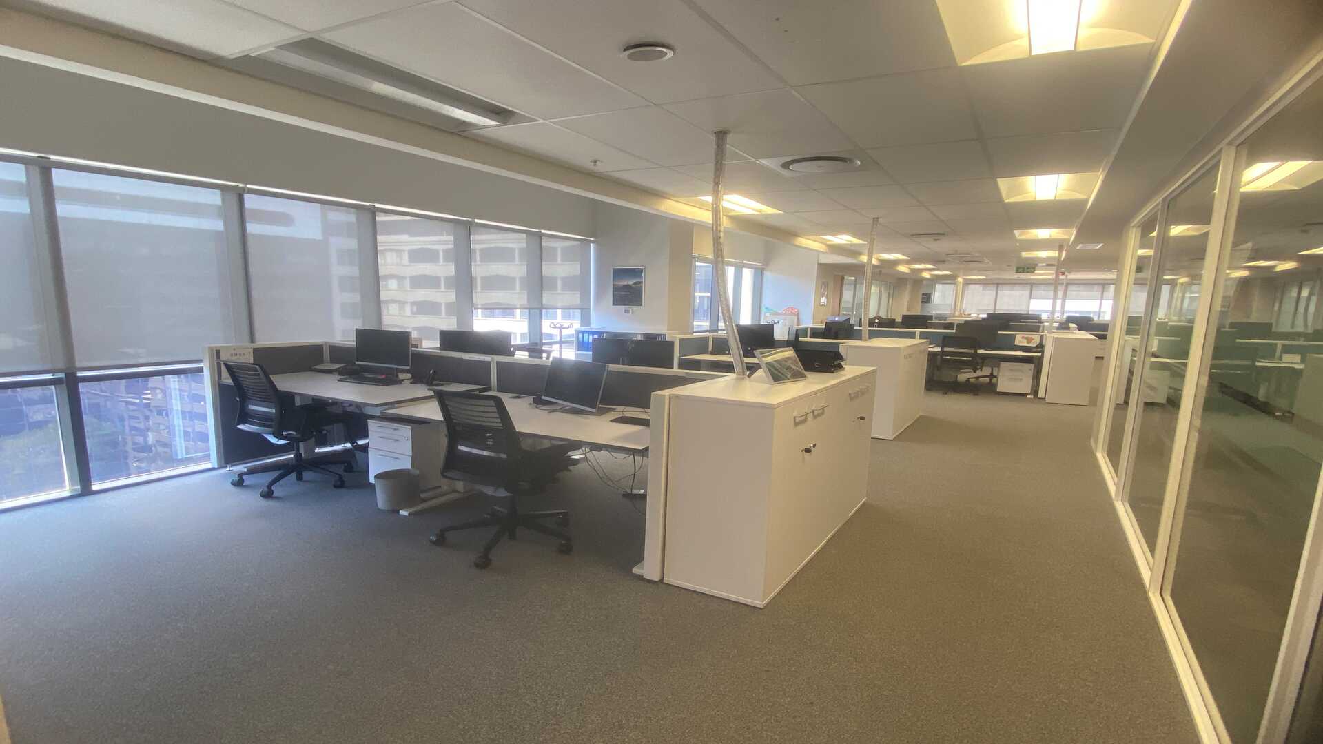 Entire 8th floor office comprising a well-balanced mix of private offices, meeting rooms, training rooms, open-plan work areas, a fully fitted kitchen, and a dedicated server room.