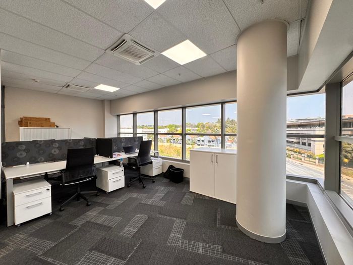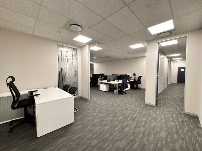 "Elevate your business presence with this expansive 665 sqm office space nestled within the stylish and vibrant Design Quarter in Fourways. Perfectly positioned for both functionality and flair, the space offers a versatile open-plan layout, ideal for collaboration and innovation. It also features multiple enclosed offices for private focus work, boardrooms for strategic meetings, and a modern kitchenette to keep your team fuelled throughout the day.