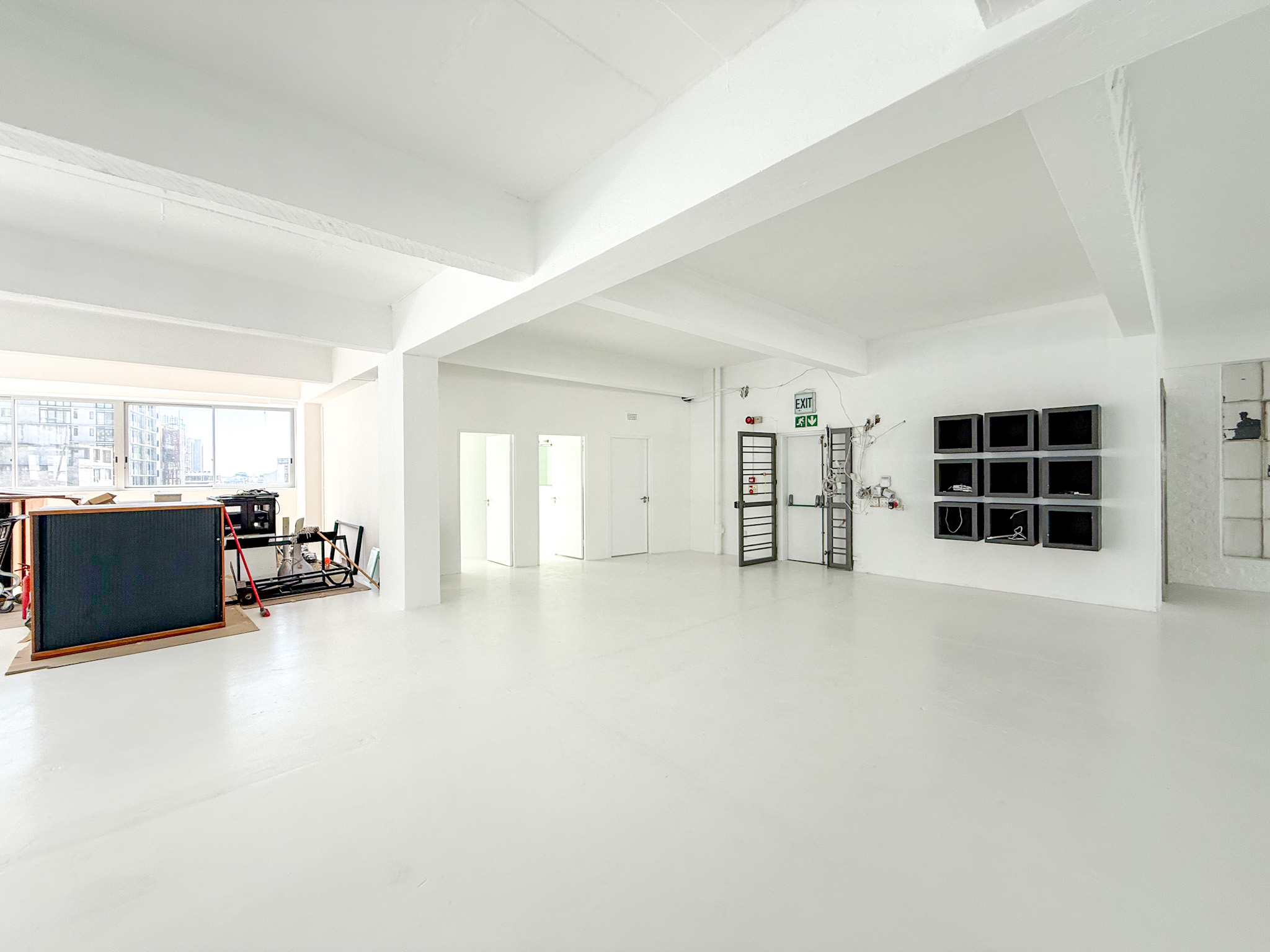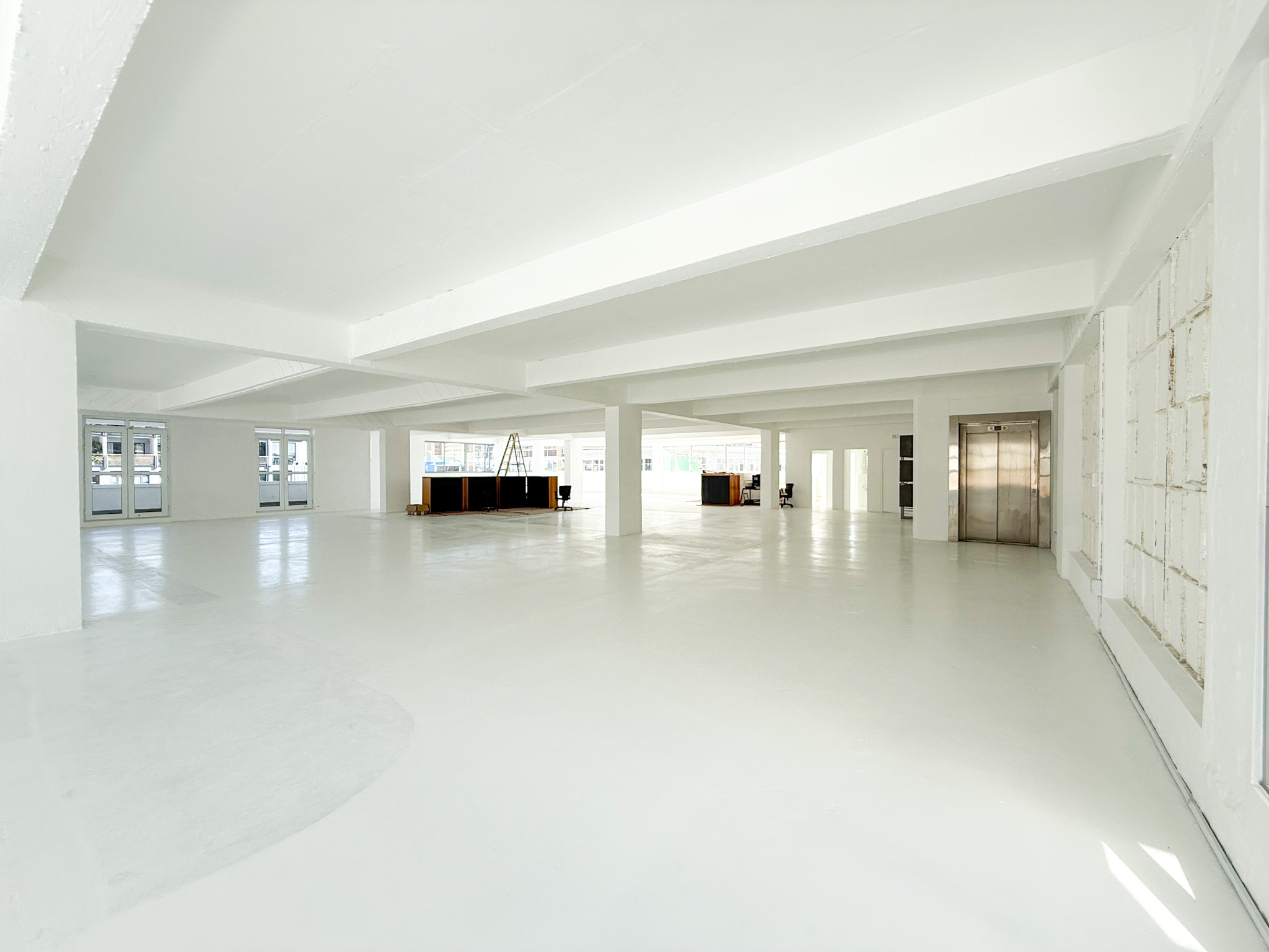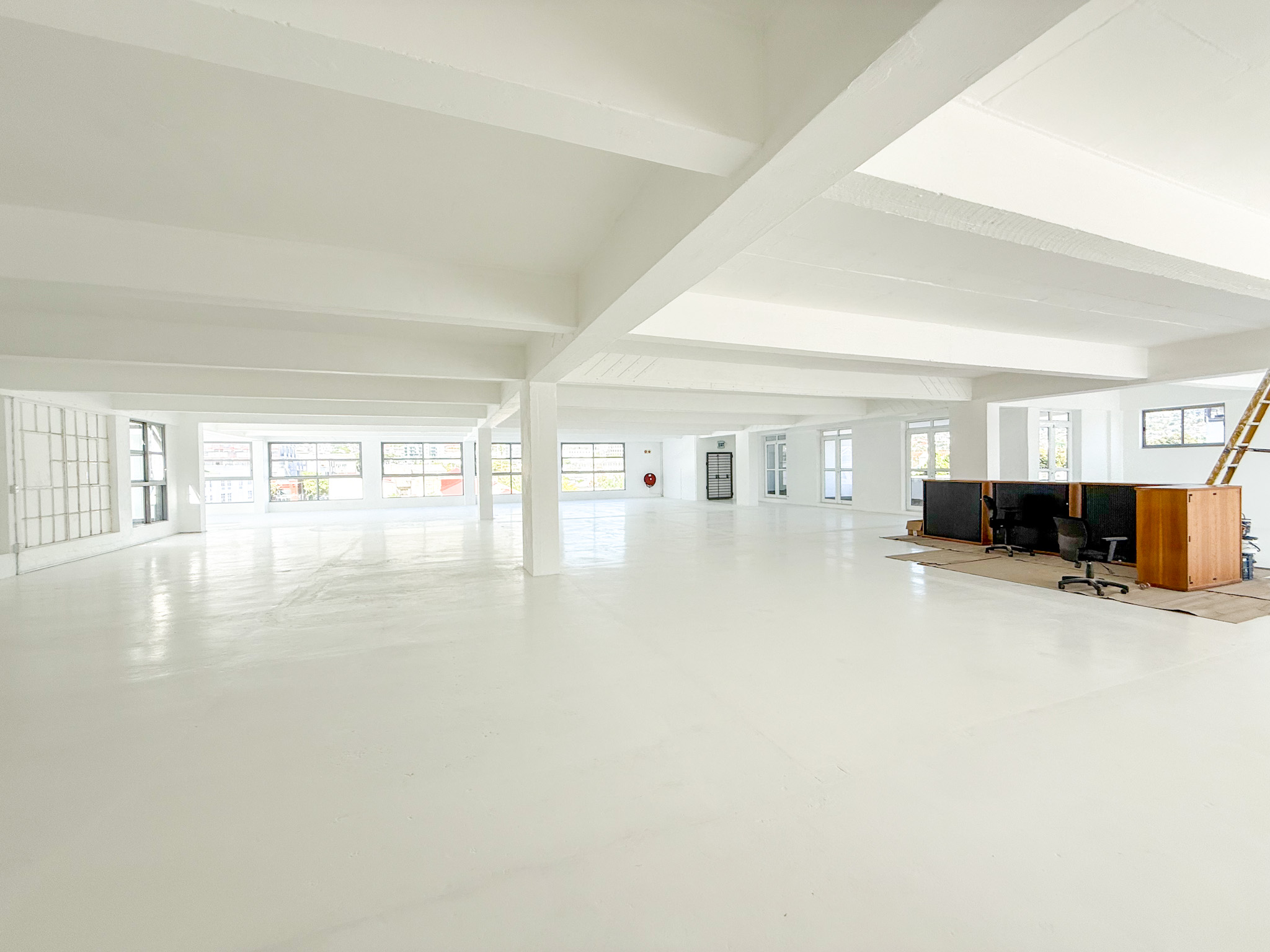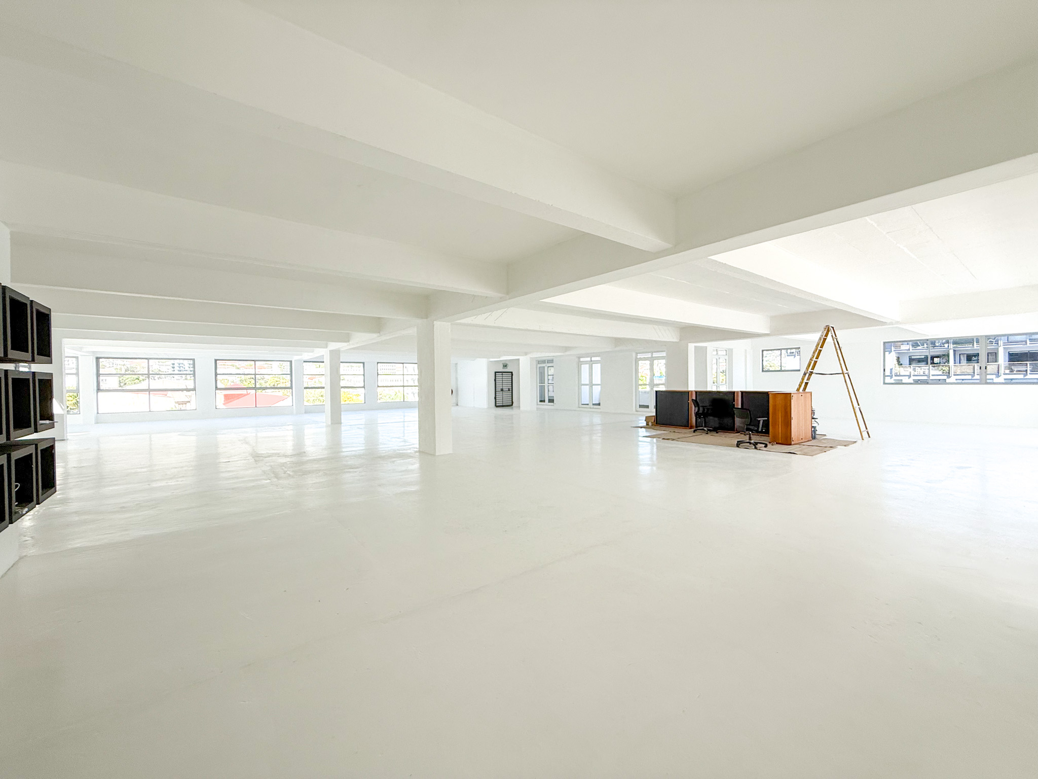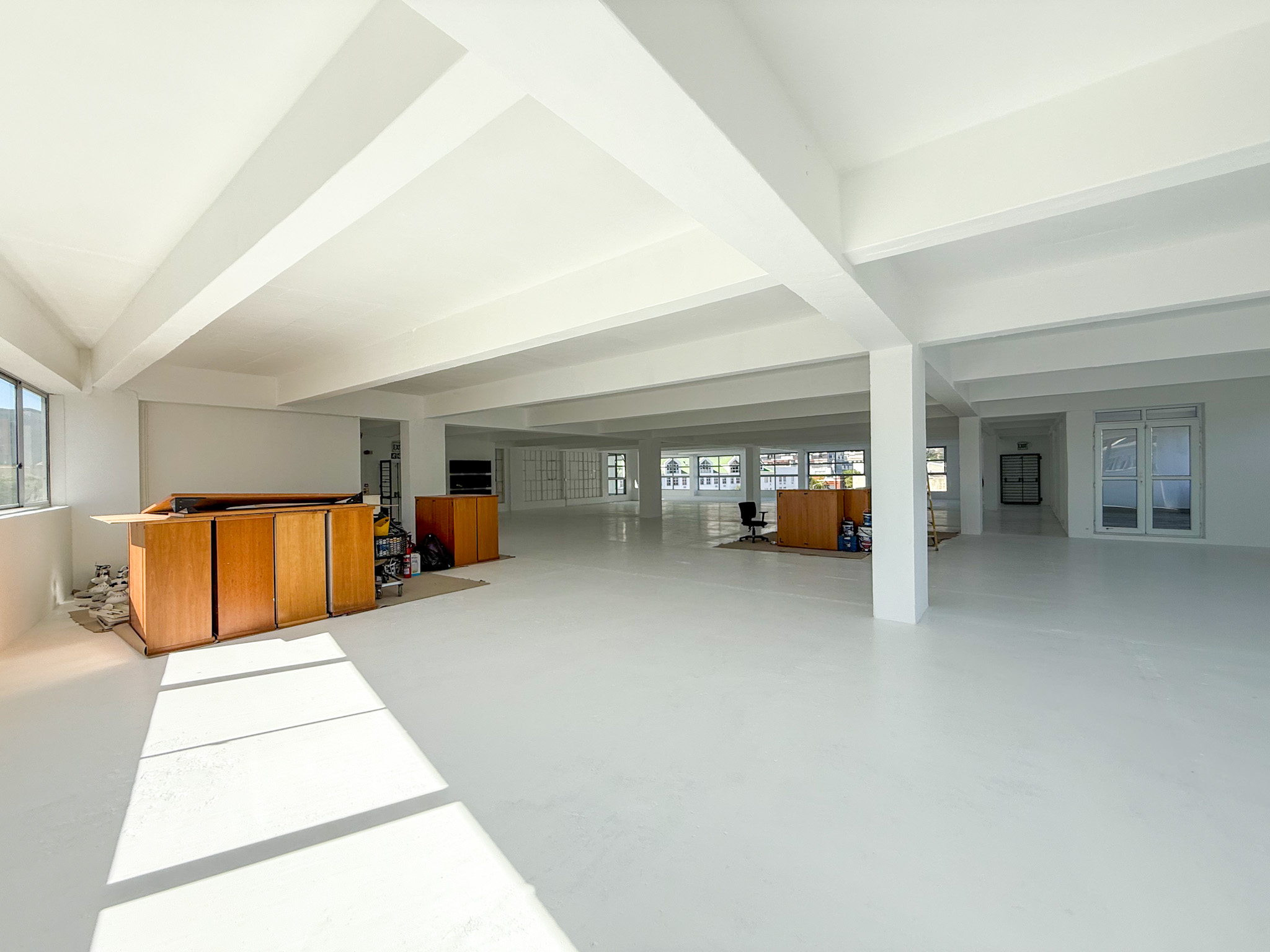 - White-boxed interior with a large, open-plan layout ideal for collaborative office setups