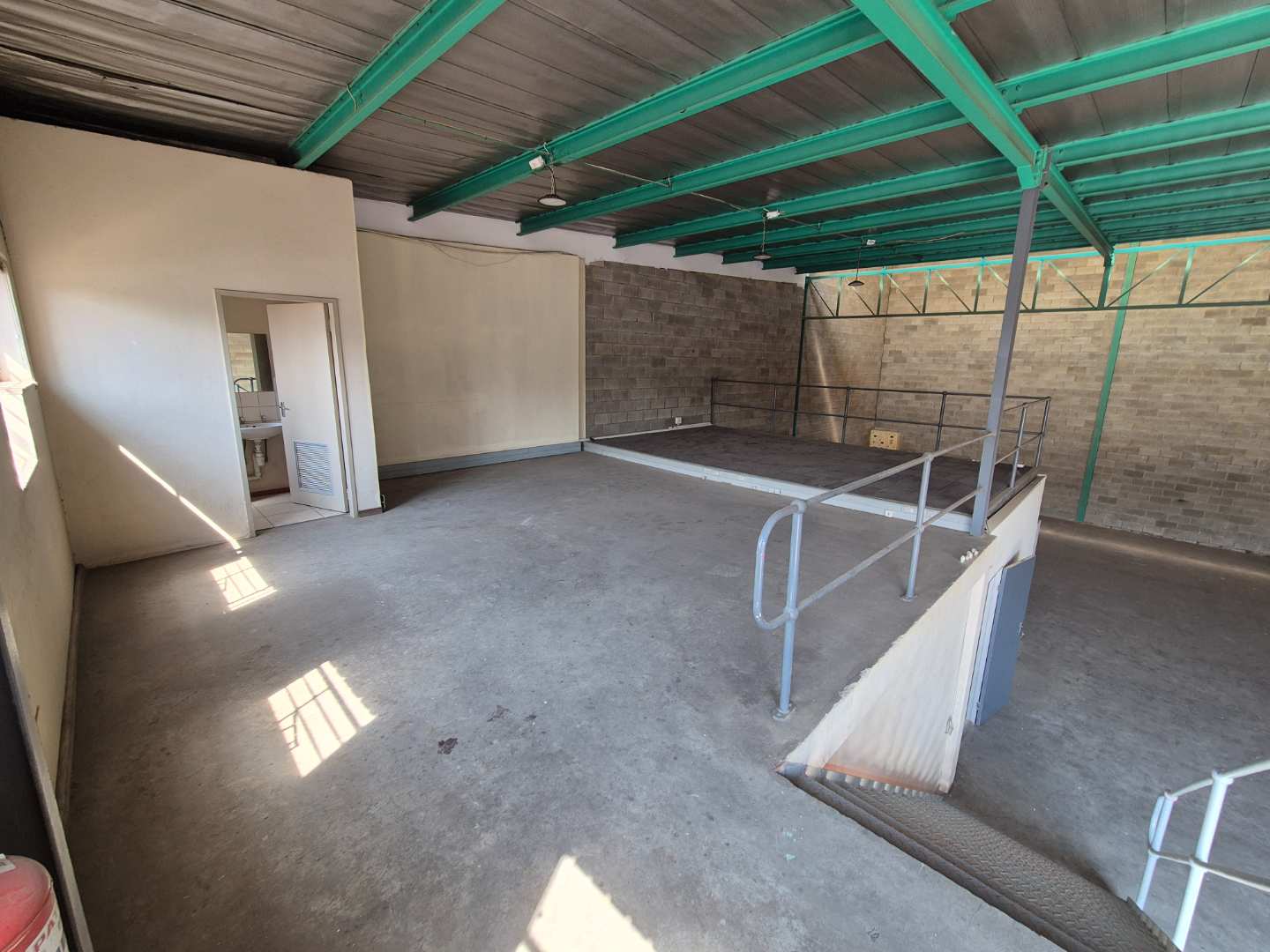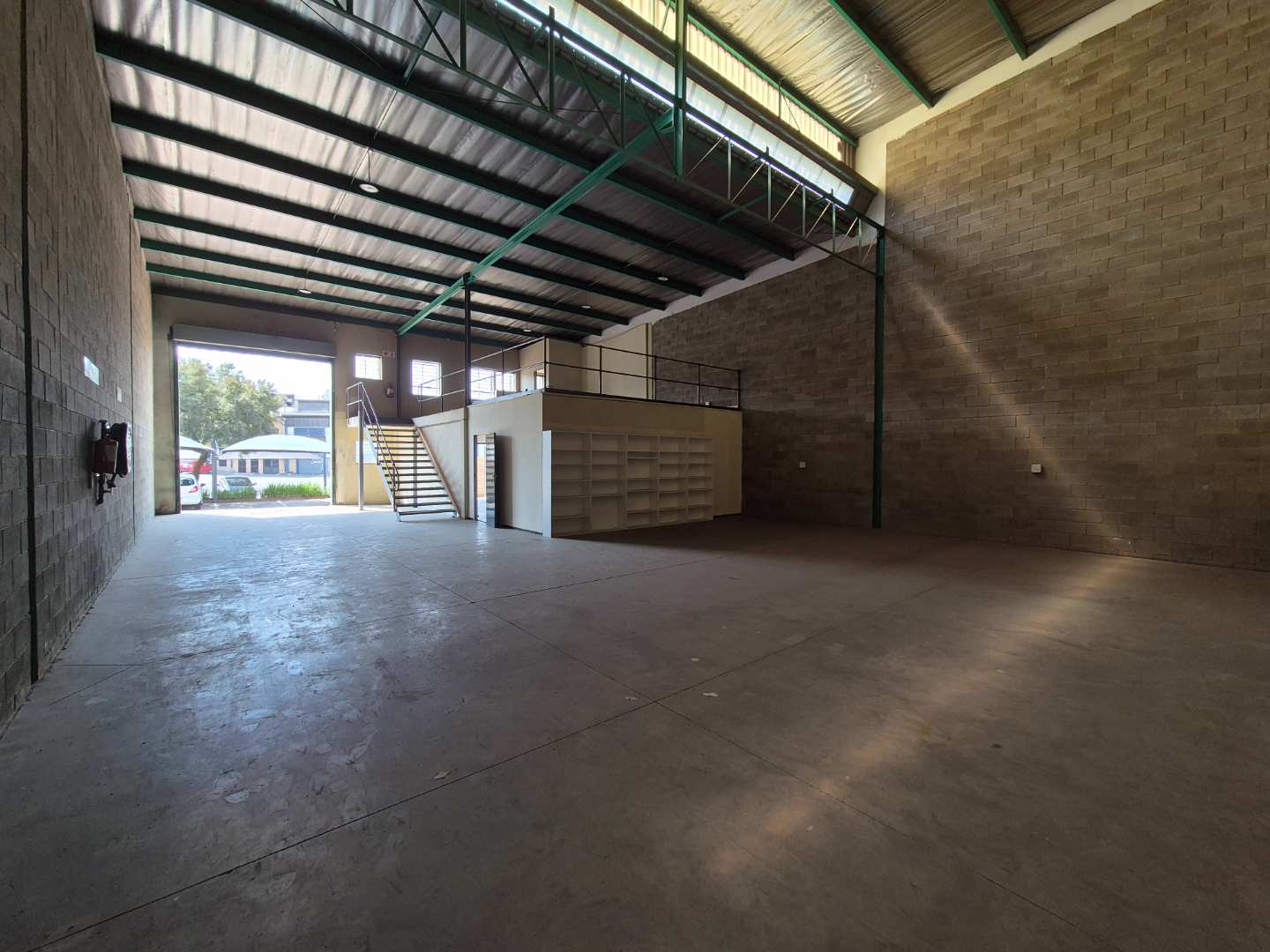 The warehouse provides a well-designed open floor area with excellent natural light, generous internal height for racking or machinery, and a roller shutter door that simplifies loading and offloading. With three-phase power on-site, the unit easily supports manufacturing equipment, assembly lines, or heavier operational requirements.