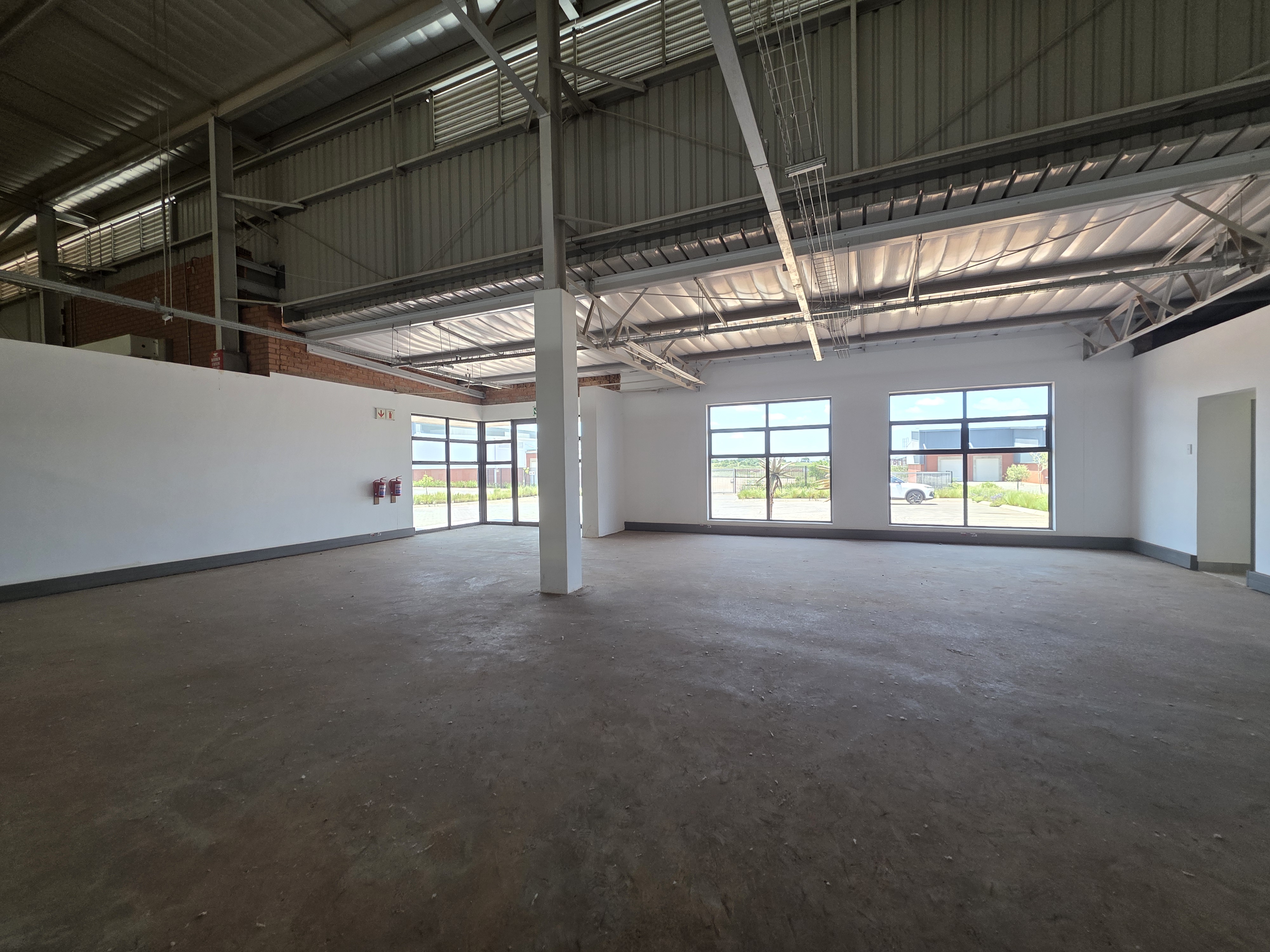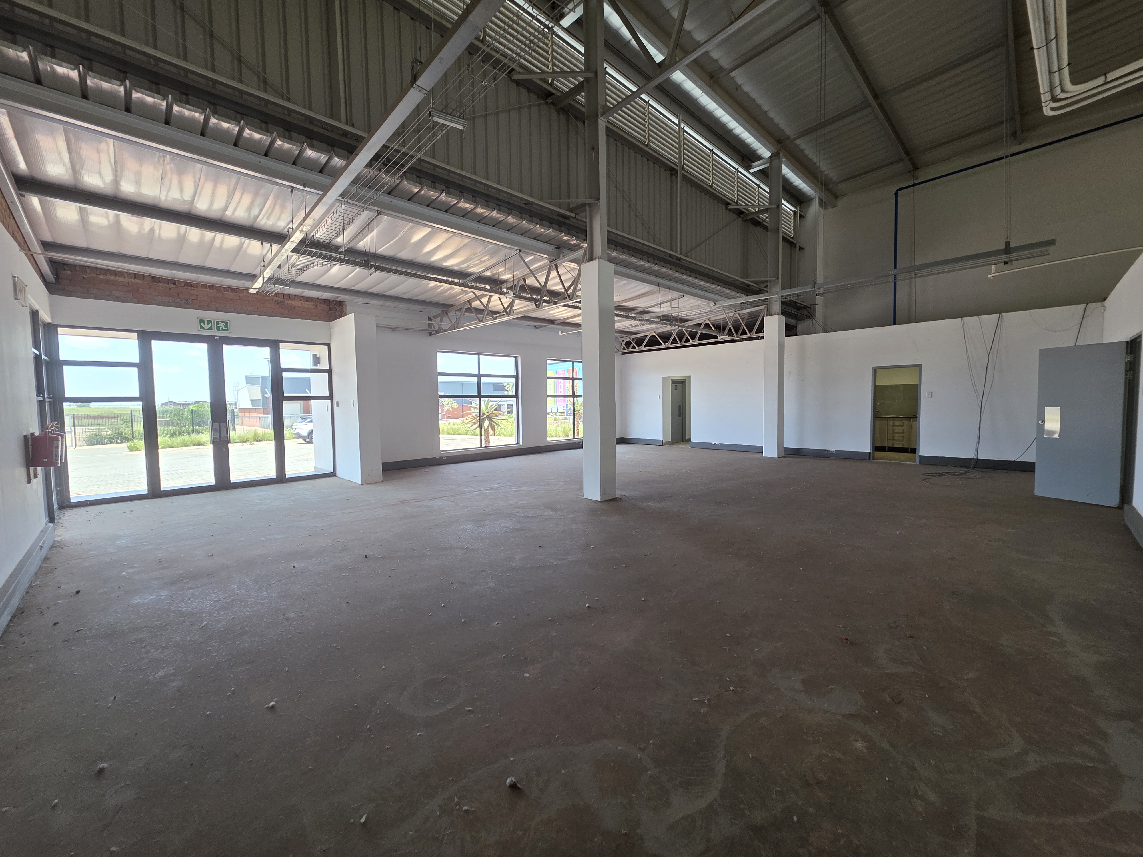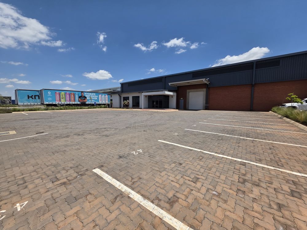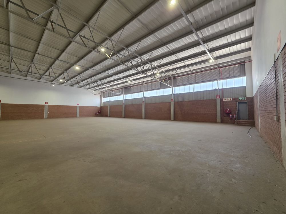 This neat & secure warehousing facility TO LET in a secure industrial estate, is available immediately. Total GLA under roof of 1,730sqm with a warehouse size of 1,599sqm and office size of 131sqm. Modern aesthetics with 1 x large roller shutter door for access, with overhangs. Good height to eaves and well lit with natural lighting. 3phase power 160amps. Workers ablutions are situated inside the warehouse area. Office area consists of an open planned reception and sales area, which can be spec'd to your needs by adding individual offices. Office ablutions and kitchen are located to the right of the office. Decent size yard area in front of the unit, along with plenty of parking bays. Access to the R21 highway is within minutes. AVAILABLE IMMEDIATELY