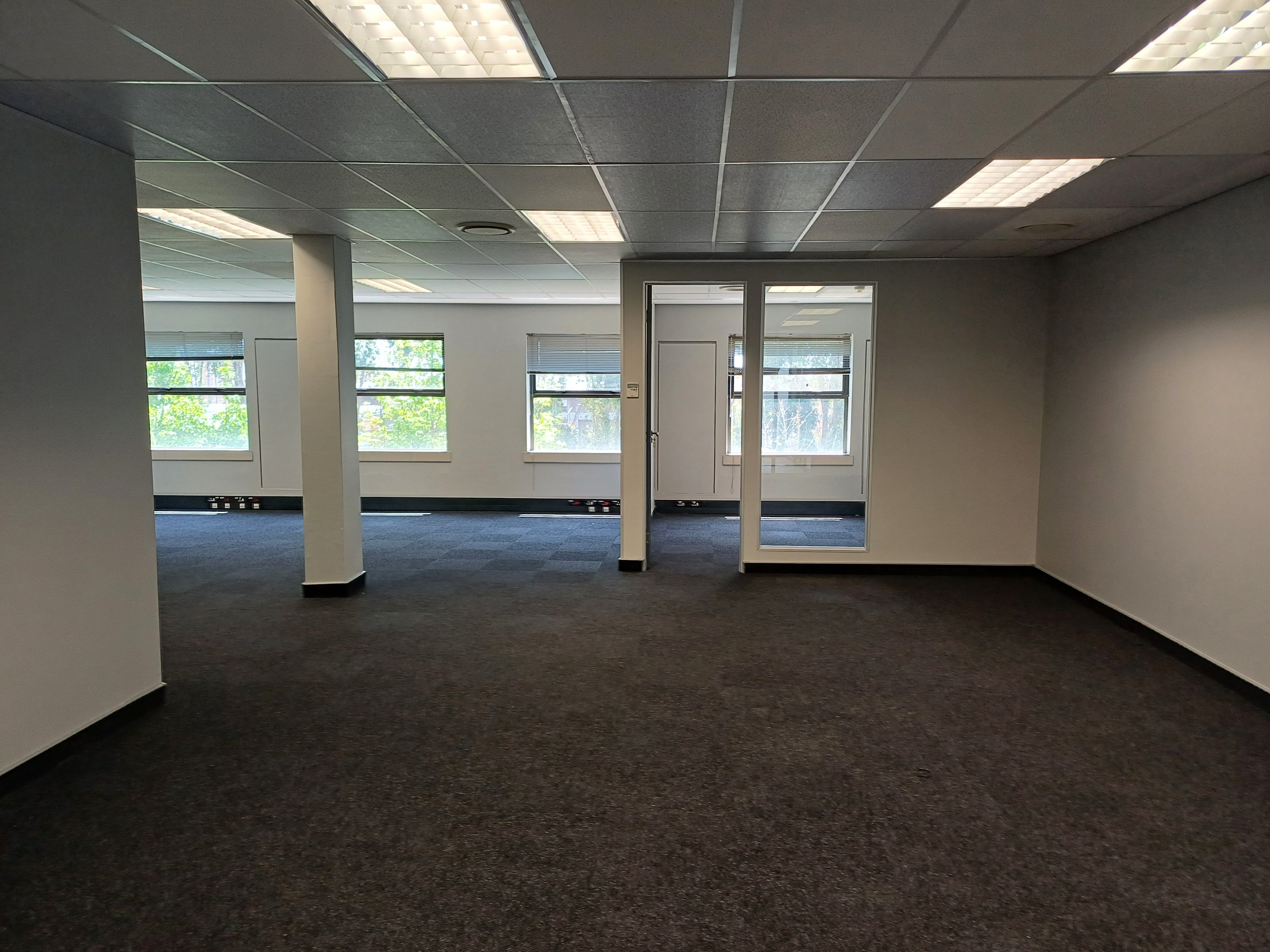 Recently revamped, the interior boasts new carpets and a contemporary layout that enhances both functionality and aesthetics. The office includes a welcoming reception area, a large open-plan workspace that promotes collaboration, and a small kitchenette area for added convenience.