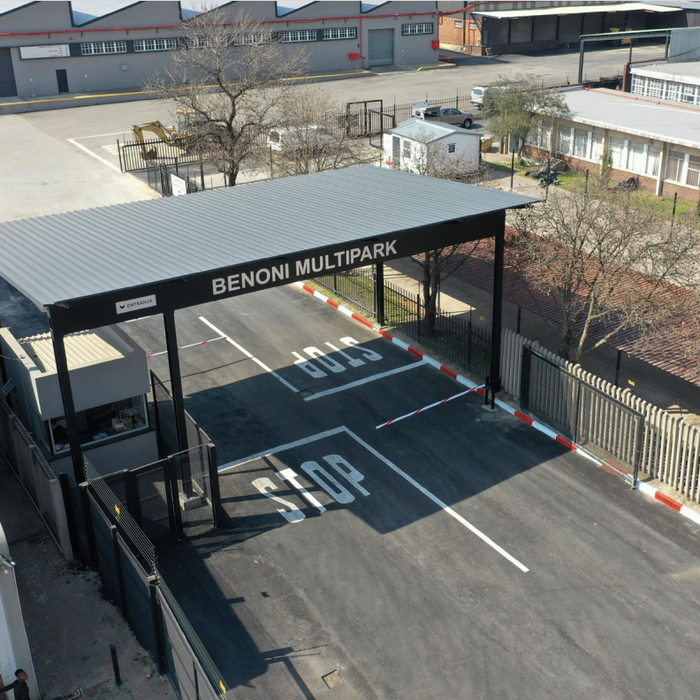 Optimize logistics from Benoni Multipark with direct N12/N17 access and 24/7 security; versatile 4,280m² warehouse featuring six roller shutter doors and a spacious yard for container handling.